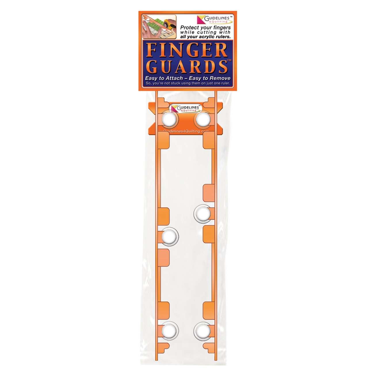 Attach with 3 suction cups on 12", 24" long or 12" square rulers to protect your fingers while rotary cutting.