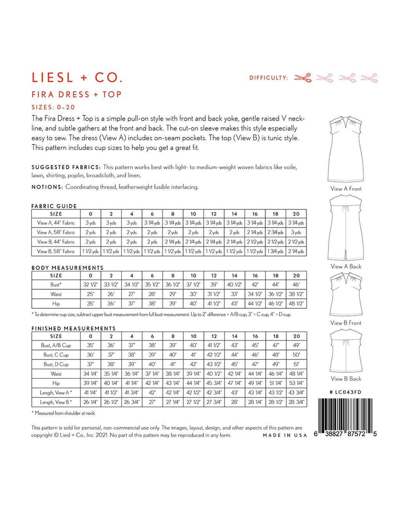 The Fira Dress + Top is a simple pull-on style with front and back yoke, gentle raised V neckline, and subtle gathers at the front and back. The cut-on sleeve makes this style especially easy to sew. The dress (View A) includes on-seam pockets. The top (View B) is tunic style. This pattern includes cup sizes to help you get a great fit.