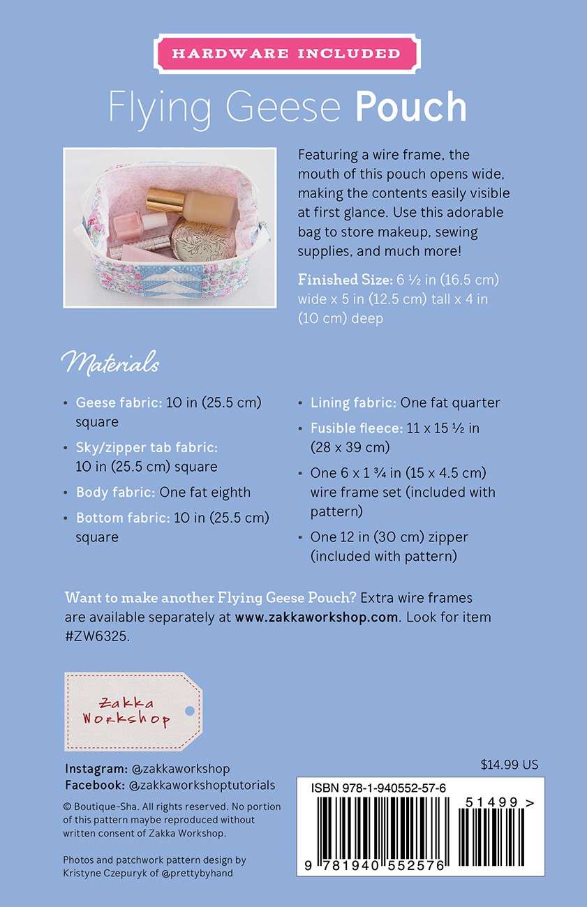 Featuring a wire frame, the mouth of this pouch opens wide, making the contents easily visible at first glance. Use this adorable bag to store makeup, sewing supplies, and much more! Finished Size: 6 ½" (16.5 cm) wide x 5" (12.5 cm) tall x 4" (10 cm) deep. Kit includes: pattern, wire frame set, and one 12" (30 cm) zipper. Extra wire frames are also available separately. Look for item #ZW6325.
