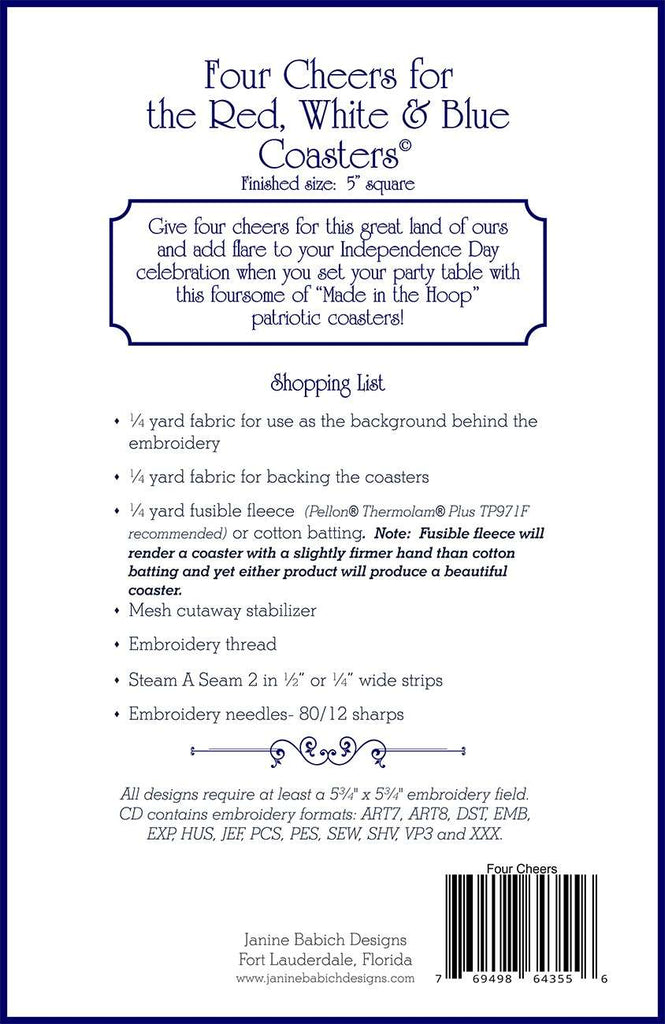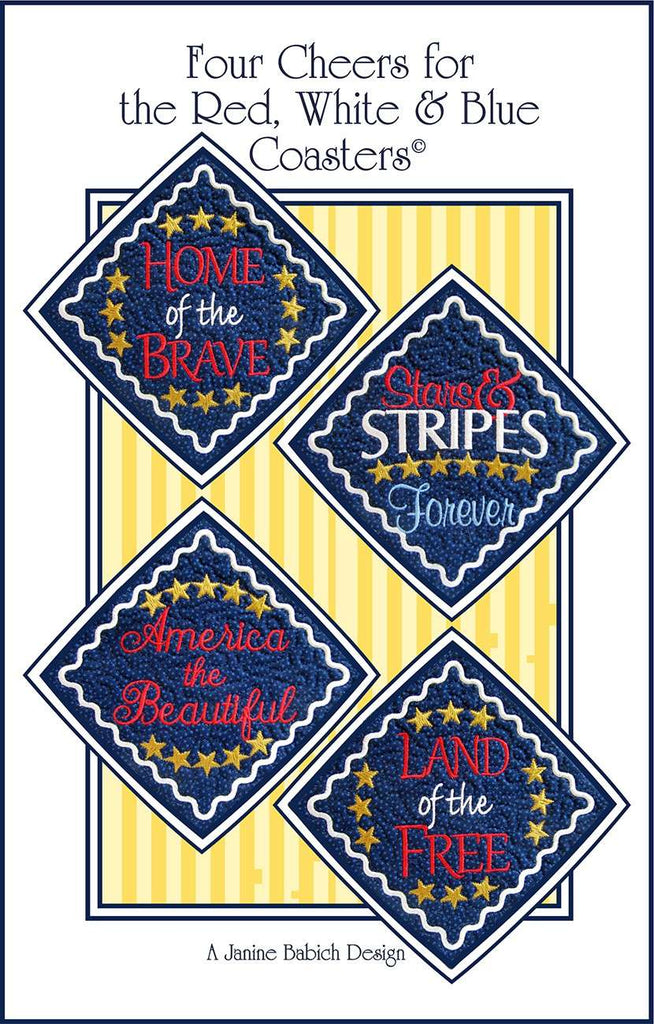 Four Cheers for the Red, White & Blue Coasters Embroidery by Janine Babich