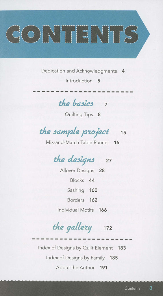¦¦ 155 quilting patterns to complement specific areas on your quilt.