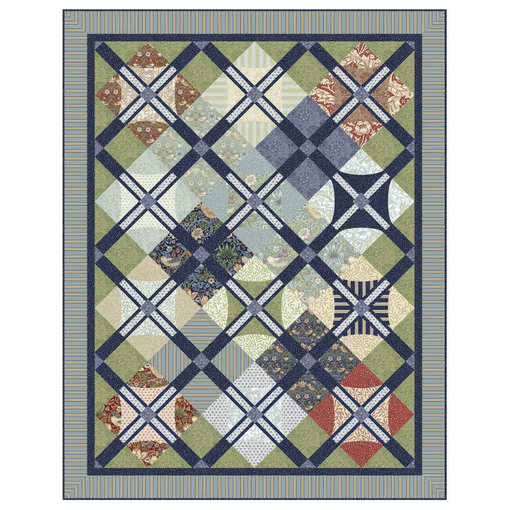 The gentle curves in this quilt are nearly as easy to sew as the straight seams – give it a try! Gorgeous William Morris prints provide awesome depth and interest, and stripes are showcased with bias-cut block sections and a handsome mitered outer border.