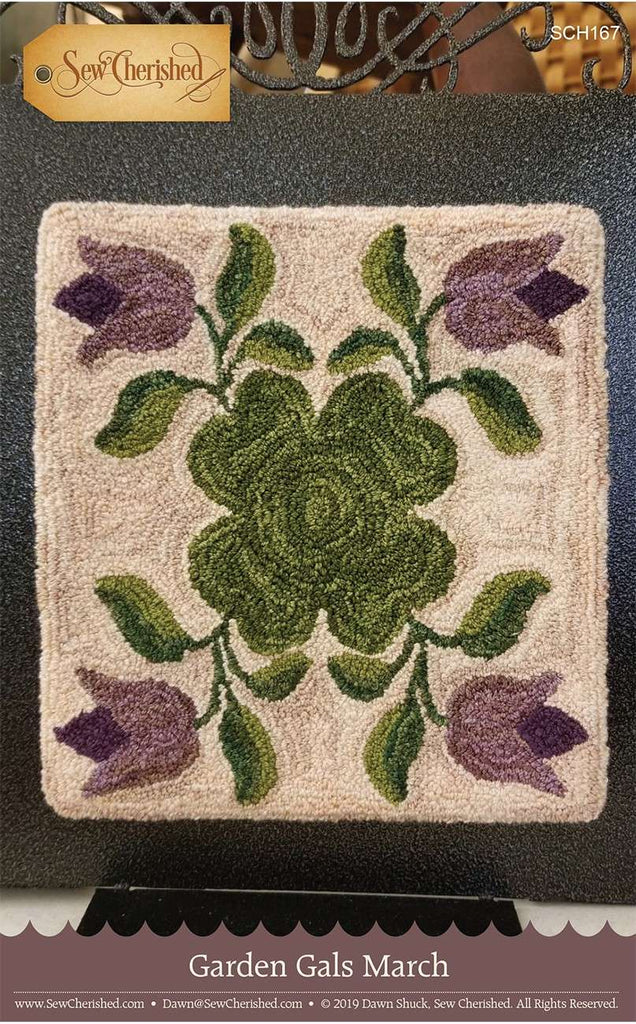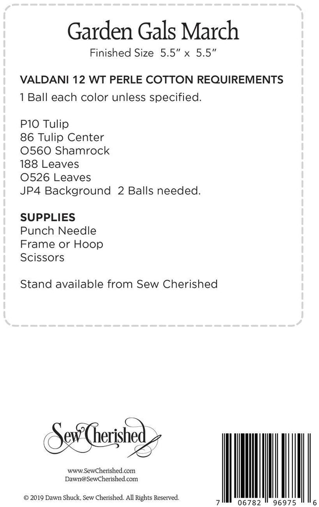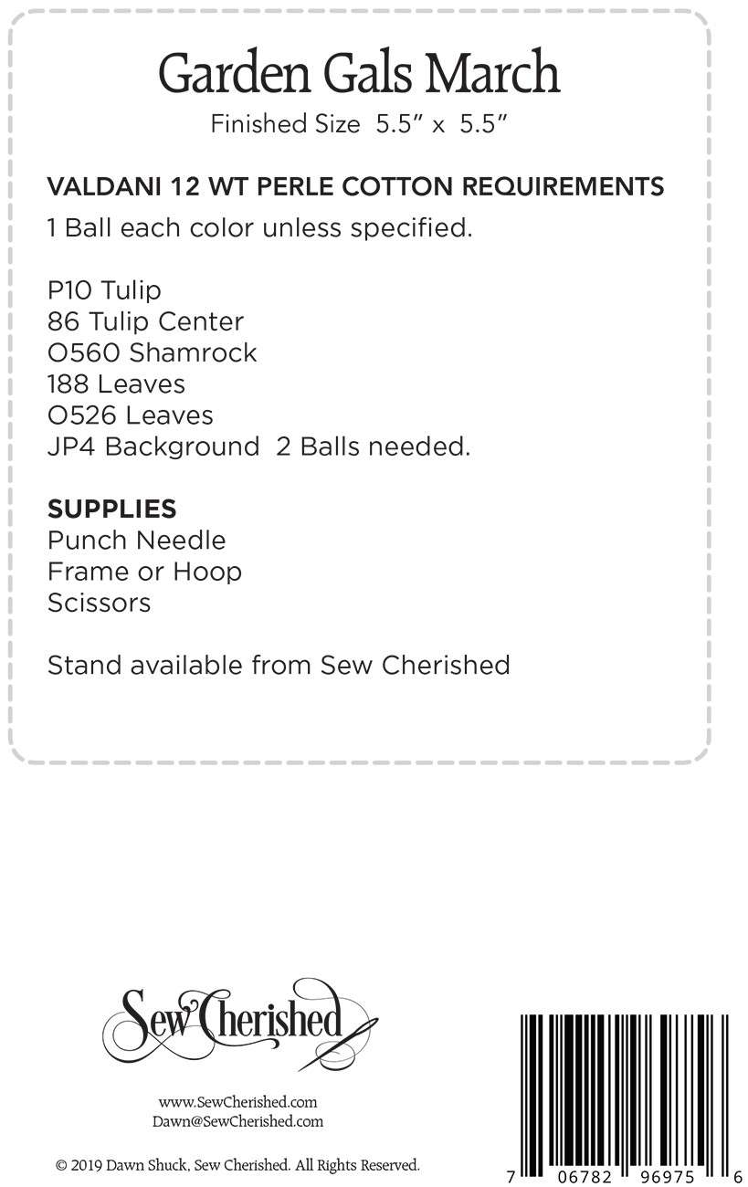 We are very excited about our Garden Gals Punch Needle Club. This design is punched with Valdani Perle Cotton 12. Finished size is 5.5"x5.5" and the design is already stamped on weavers cloth and included with the pattern. The stand is custom designed to fit with this series. Be sure to look for the other months of this series.