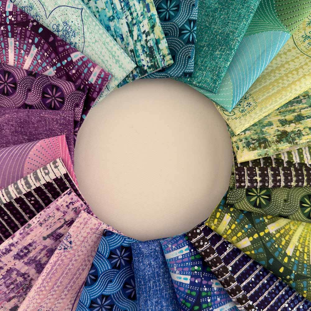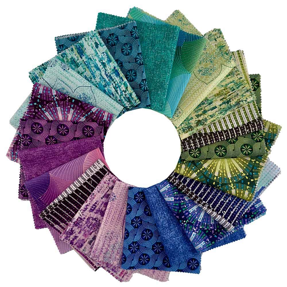 Geo Pop Pearl will add some shimmer to your next project with pearlescent touches incorporated into each print. This cool-toned group brings in purples, blues and greens for an electric feeling. The variety of geometric and textural patterns is a delight to mix and match together. Incorporate these cool-toned prints into a guest room to create an inviting and modern space. Top the bed with a quilt that electrifies the space and top with textural decorative pillows. Geo Pop Pearl will make your creative ideas shine. The 10" squares collection includes 42 pieces.