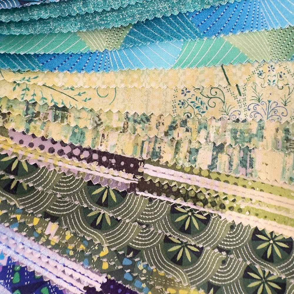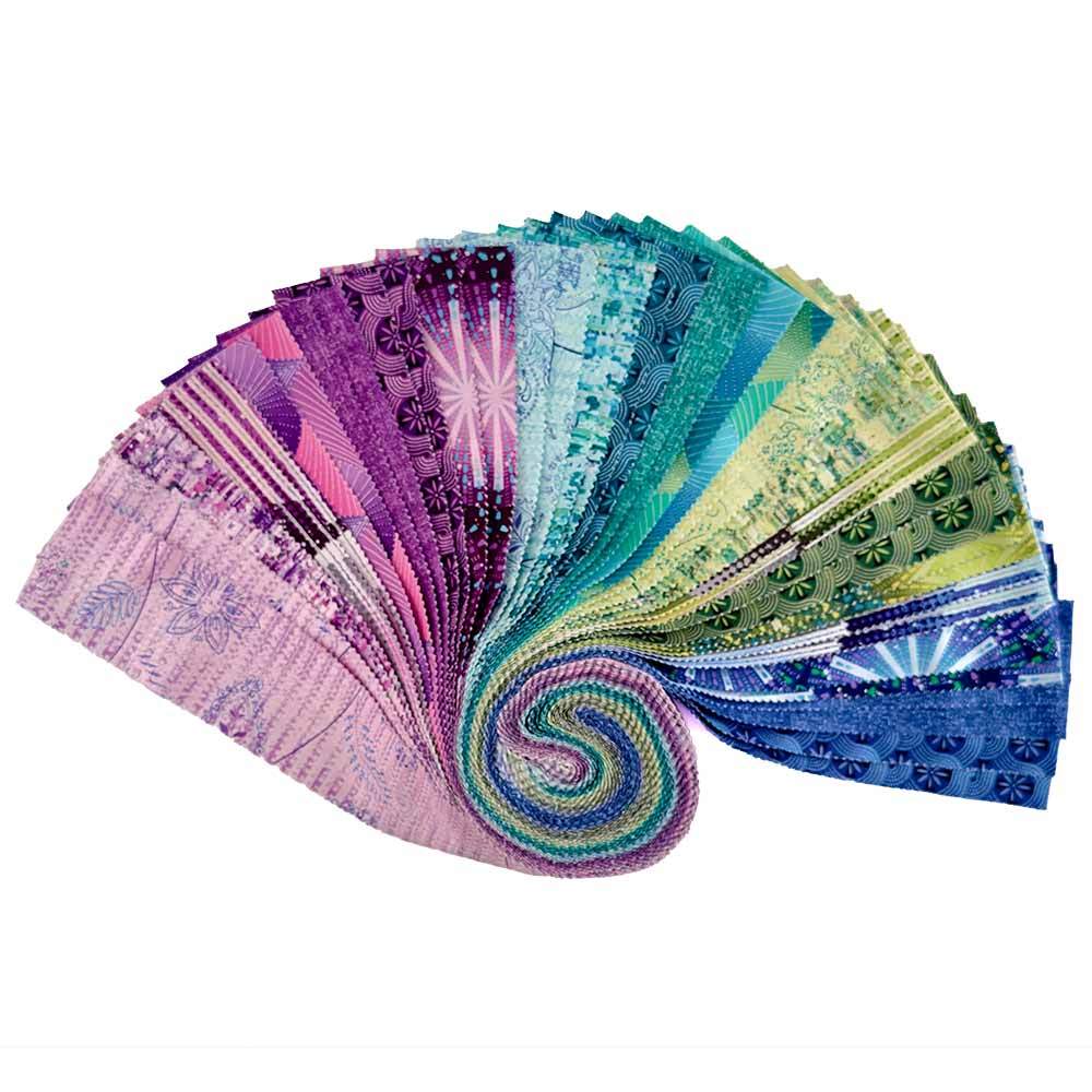 Geo Pop Pearl will add some shimmer to your next project with pearlescent touches incorporated into each print. This cool-toned group brings in purples, blues and greens for an electric feeling. The variety of geometric and textural patterns is a delight to mix and match together. Incorporate these cool-toned prints into a guest room to create an inviting and modern space. Top the bed with a quilt that electrifies the space and top with textural decorative pillows. Geo Pop Pearl will make your creative ideas shine. The 2-1/2" strips collection includes 42 pieces.