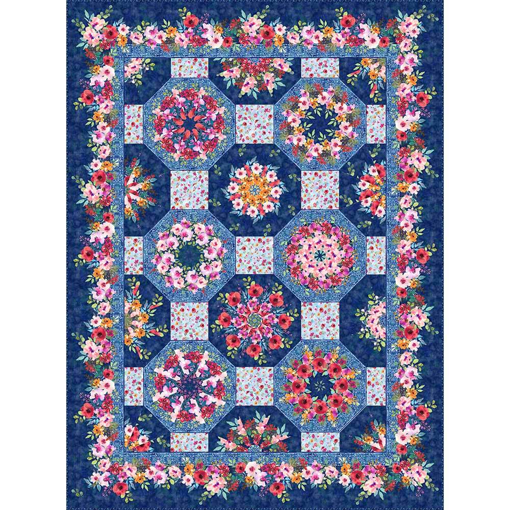 Captivating and colorful blooms fill this project. The Glorious Garden Kaleidoscope Kit includes pattern from In the Beginning and all the fabrics needed for the top and binding by Kathleen Winslow Gardner. Finished size is 65" x 87". Backing available separately, 5-1/2 yards x 44" wide is recommended.