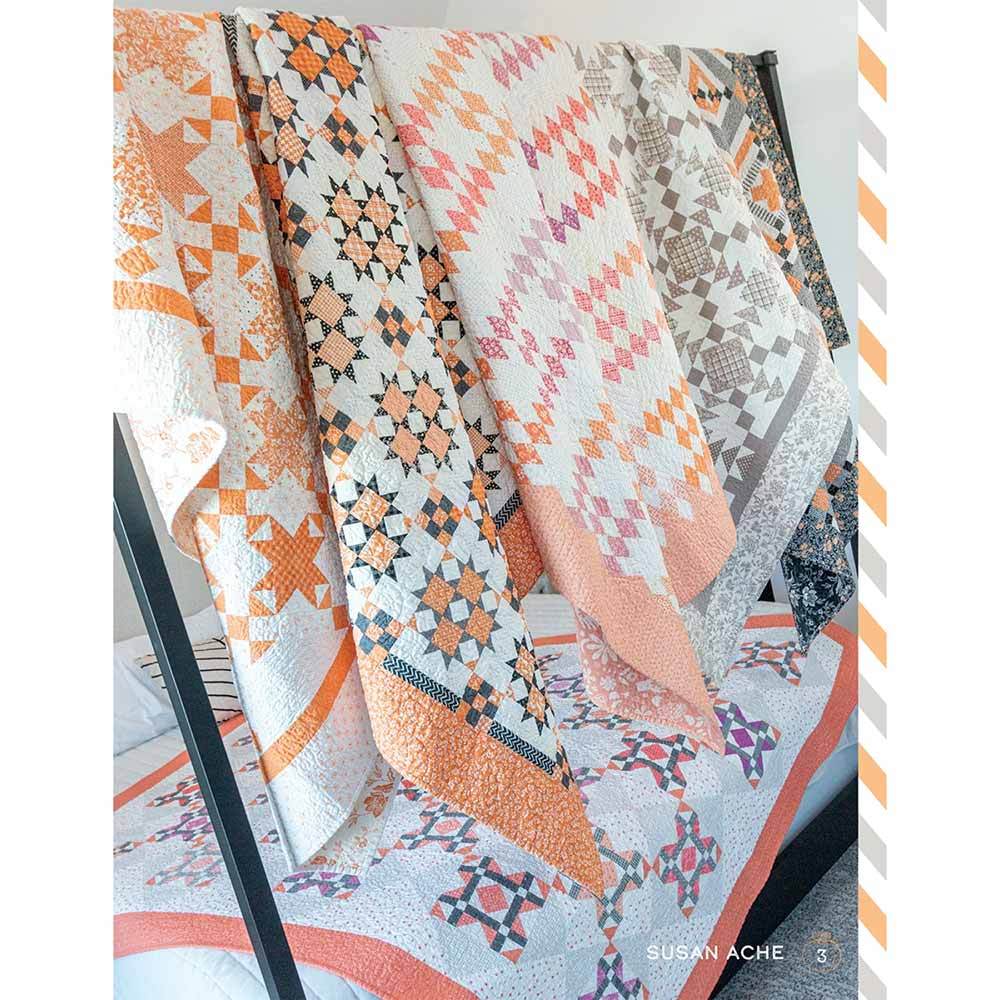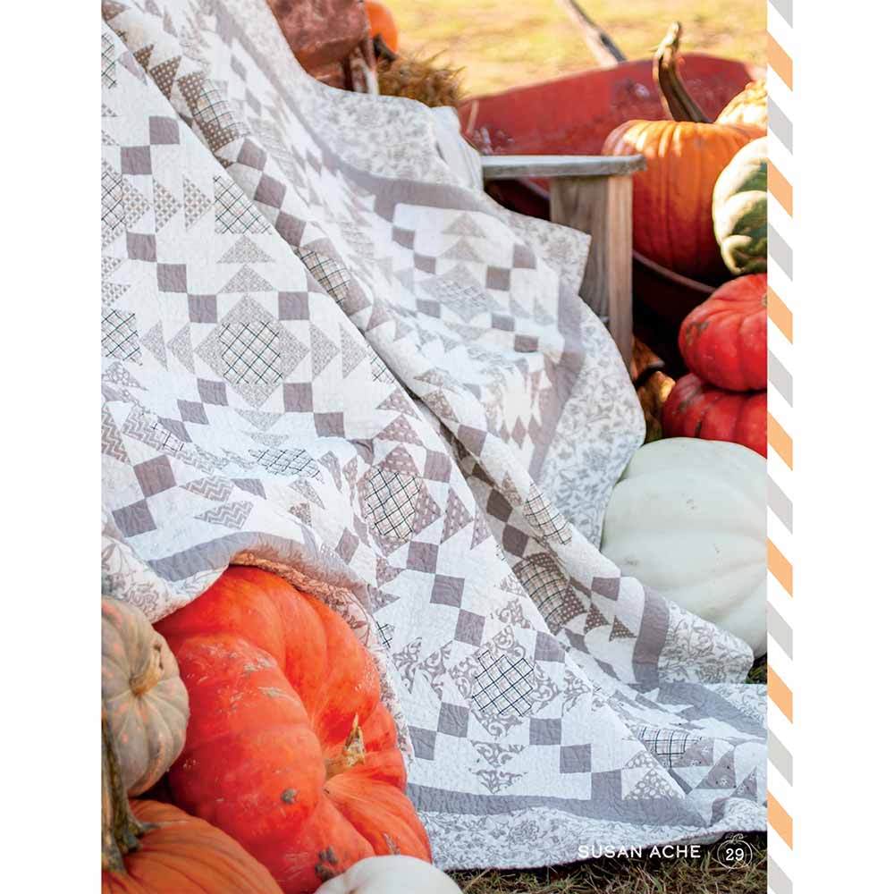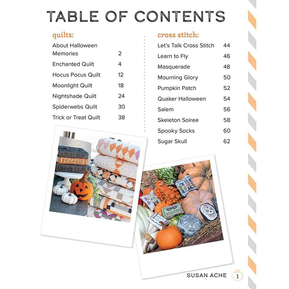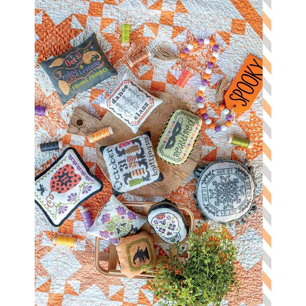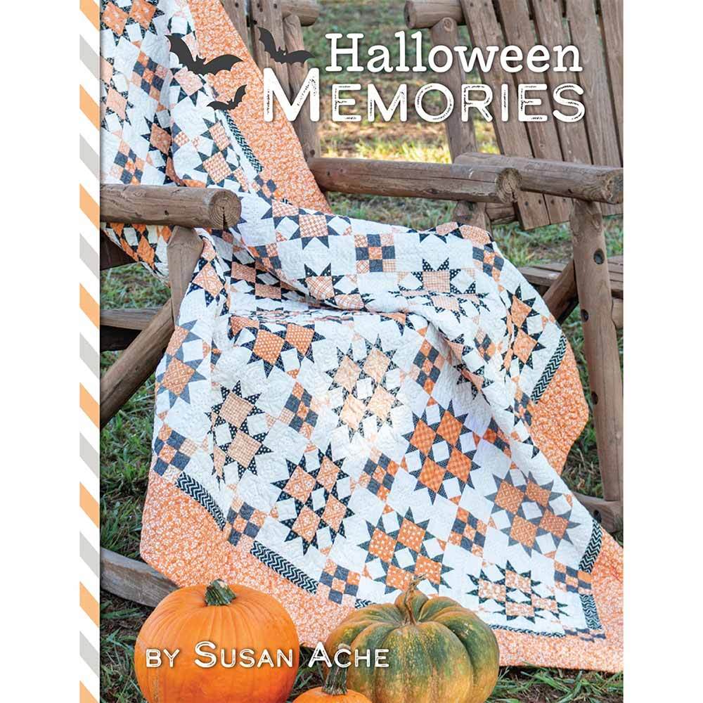 Halloween Memories by Susan Ache celebrates the magic of Halloween and Fall with eight quilts and nine cross stitch designs. In classic Halloween hues of orange and black with a sprinkling of purple, these quilts will remind you of Fall’s most magical day. Let Halloween Memories take you back in time or inspire you to create new quilty and stitchy memories for future generations