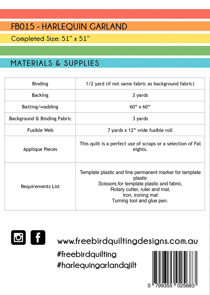 The Harlequin Garland Template set is the perfect addition to the Harlequin Garland Pattern.