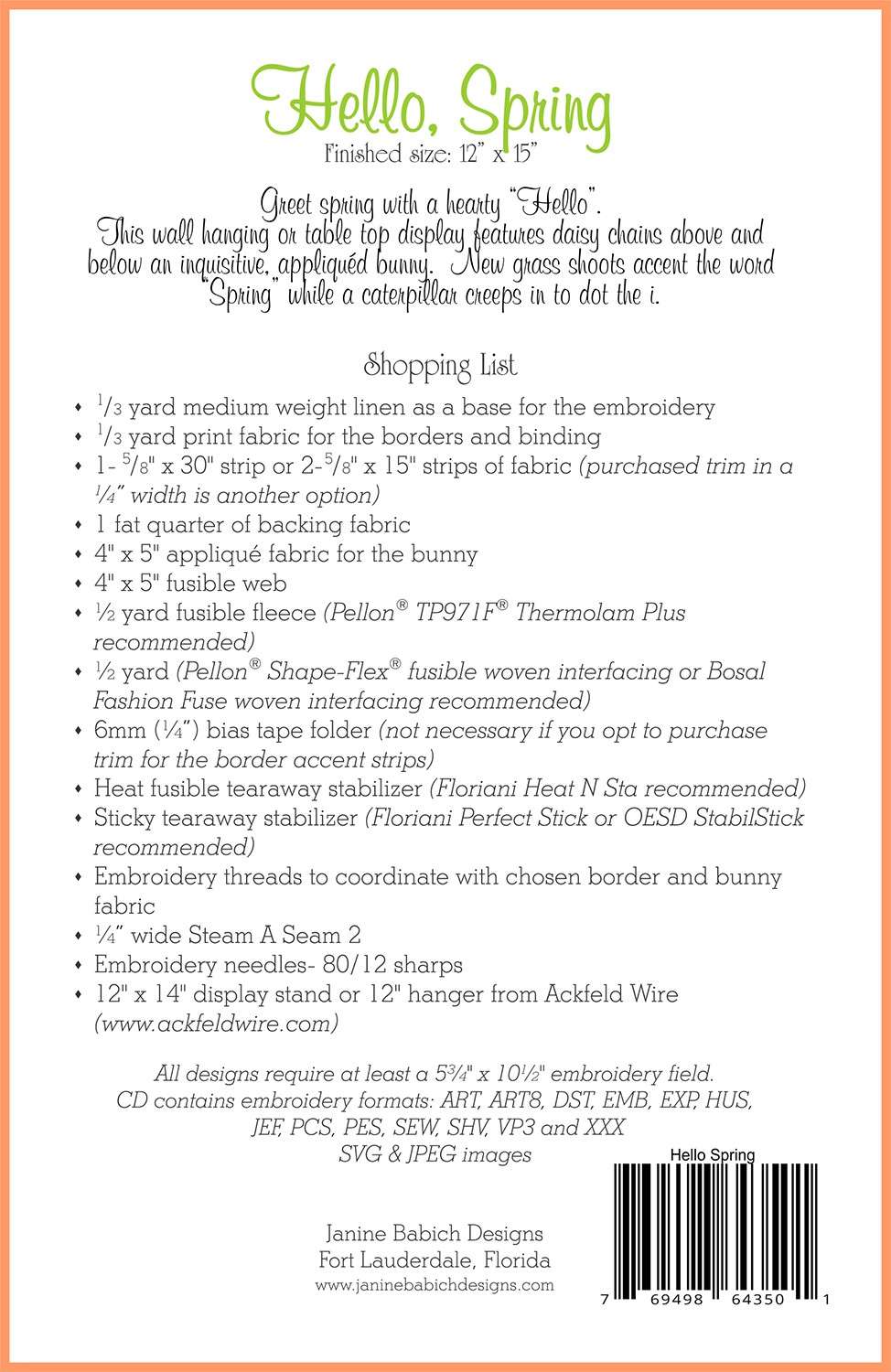 Hello Spring Wall Hanging Embroidery by Janine Babich