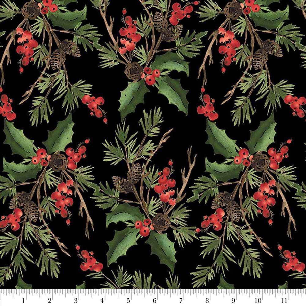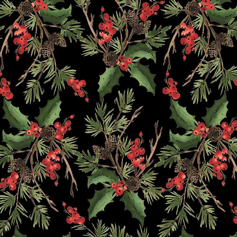 Henry Glass & Co. - Berry Chic - A Digitally Printed Collection by Pattern Wheel Studio - Holly Bouquet - Black - 108" Wide 3-Yard Back Pack