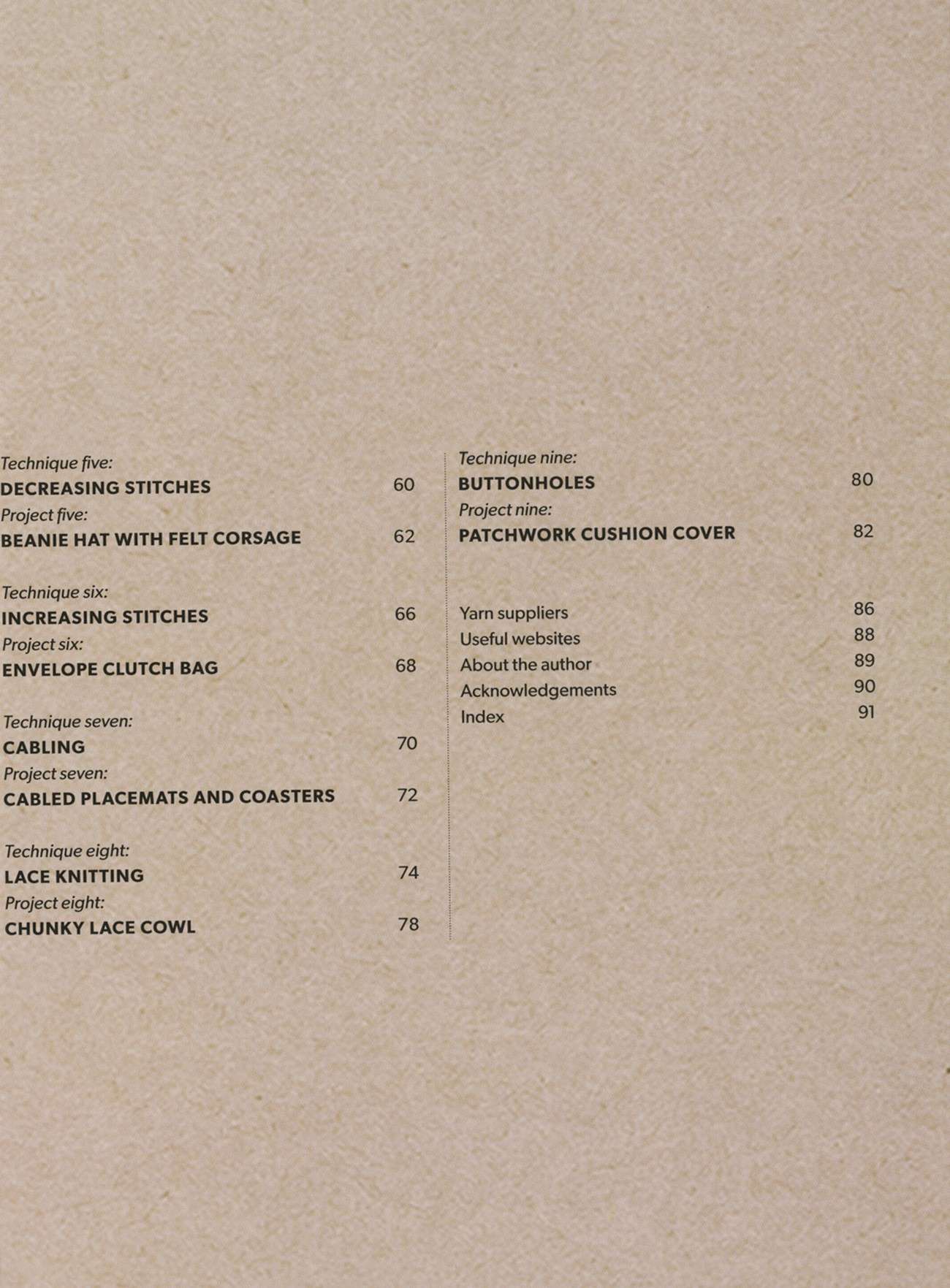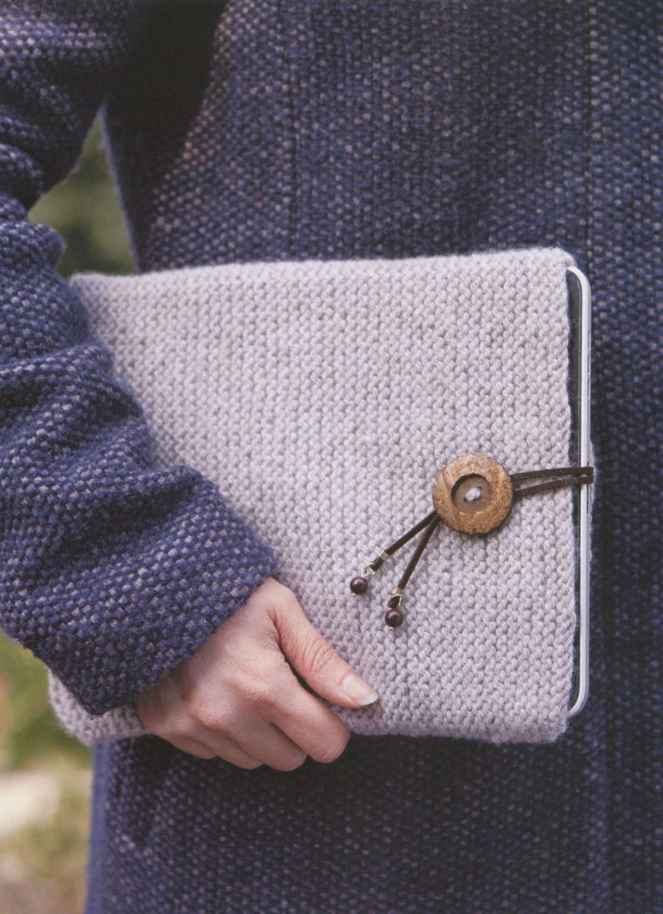 Projects include: tablet cover, hot-water bottle cover, striped hobo bag, fingerless gauntlets, beanie hat with felt corsage, envelope clutch bag, cabled place mats and coasters, chunky lace cowl and patchwork cushion cover.