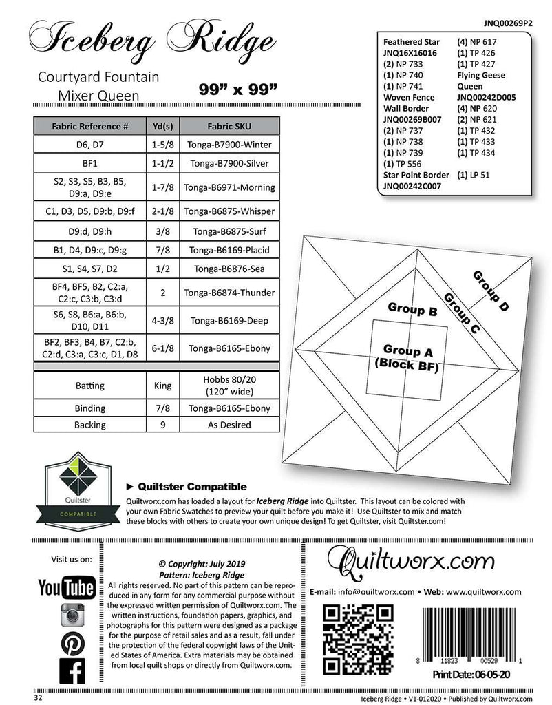 Iceberg Ridge is part of the Courtyard Mixer Series and is a limited edition collectors club design. Size is 99 x 99