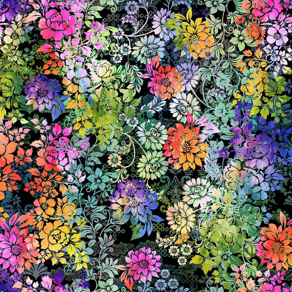In The Beginning Fabrics - Felicity by Jason Yenter - Packed Florals - Black - Yardage