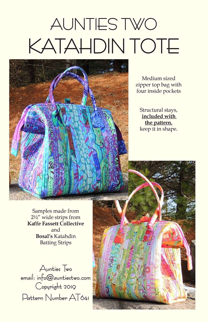 Size 11" tall x 12" wide x 6" deep. Medium sized zipper top bag made with 2 1/2" fabric strips and Bosal's Katahdin Batting (25 yard roll). Comes with 2 pre-bent stays.