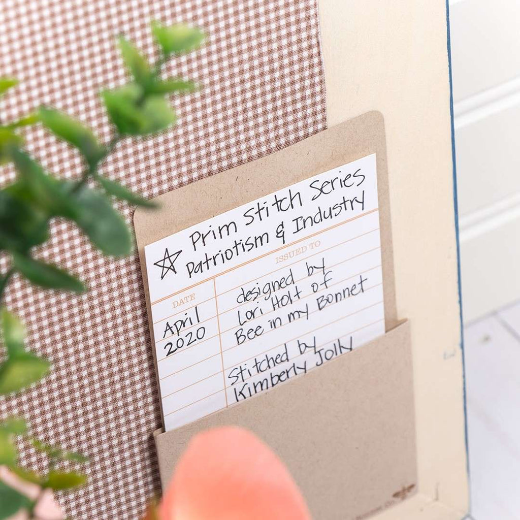 Both items are printed on sturdy, acid-free cardstock. Simply fill out the card, slide it into the pocket envelope, and attach it to your piece with It’s Sew Emma’s Cross Stitch Finishing Tape or your favorite acid-free glue.