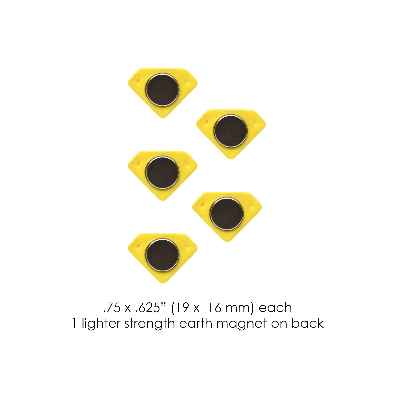 Diamond dimensions: .85" x 0.6" (21.5 mm x 15.0 mm) with one lighter-strength earth magnet on back.