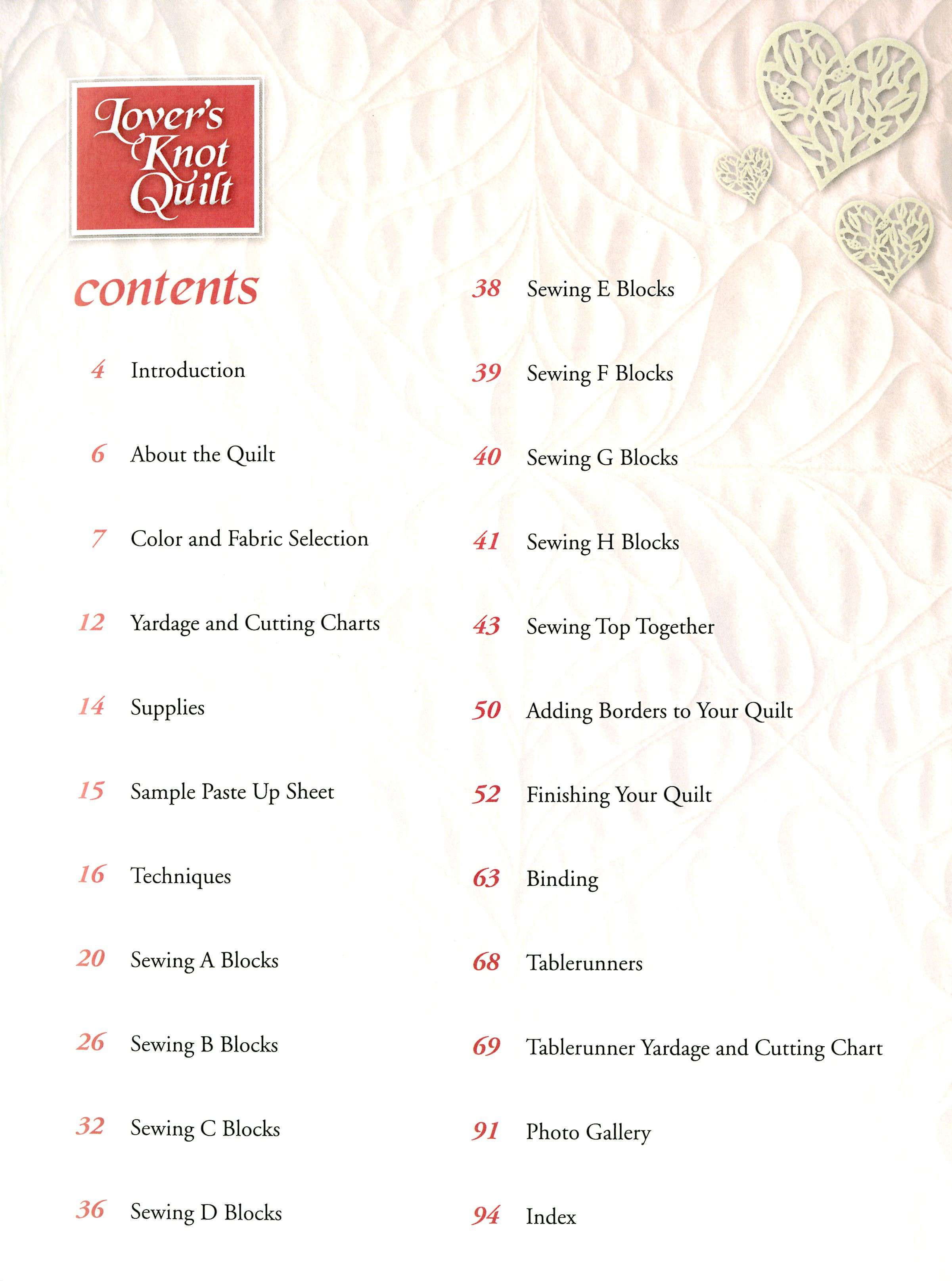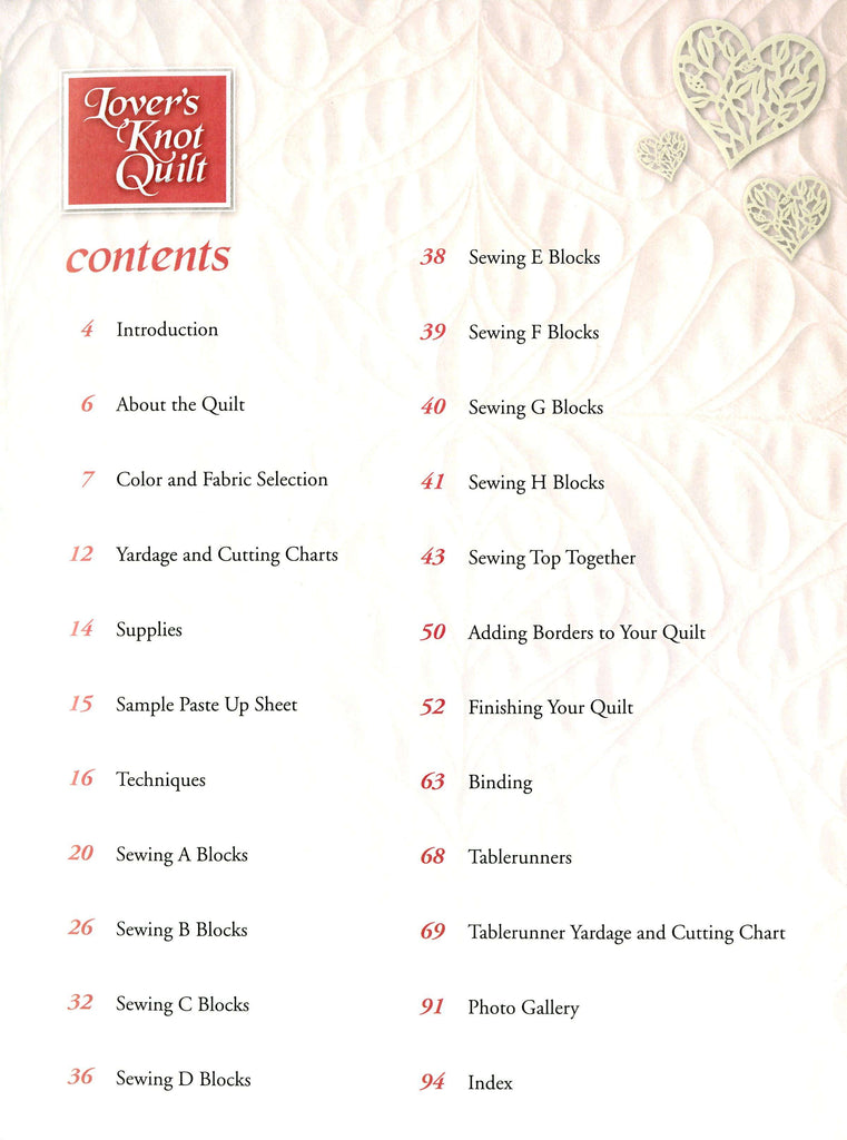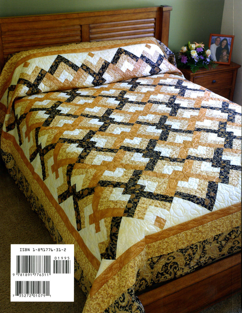 To celebrate her 30th anniversary and the marriage of her oldest son, Eleanor perfected the Lover's Knot pattern using her signature 2 1/2" strips. Add a touch of romance to any room with this lovely quilt. The elegant pattern uses two strips intertwined to make a knot. The graceful, flow of the quilt is made with two basic, strip pieced blocks. By using color and value in your fabrics, the Lovers Knots stand out to show unity. The blocks are set a point a for a dramatic effect and corners can either be squared or diagonal. Eleanor offers step by step illustrations and instructions to direct the quilter to a successful finish. There are yardage and cutting charts for all 5 quilt sizes and border options for a personalized quilt. Included with the Lovers Knot quilt pattern, Eleanor gives directions for making a matching dust ruffle with tips on measuring and sewing the ruffle. A miniature wallhanging and long and short table runners are bonus projects in the book. They are pieced with narrow 1 1/2" strips for a charming petite finish.