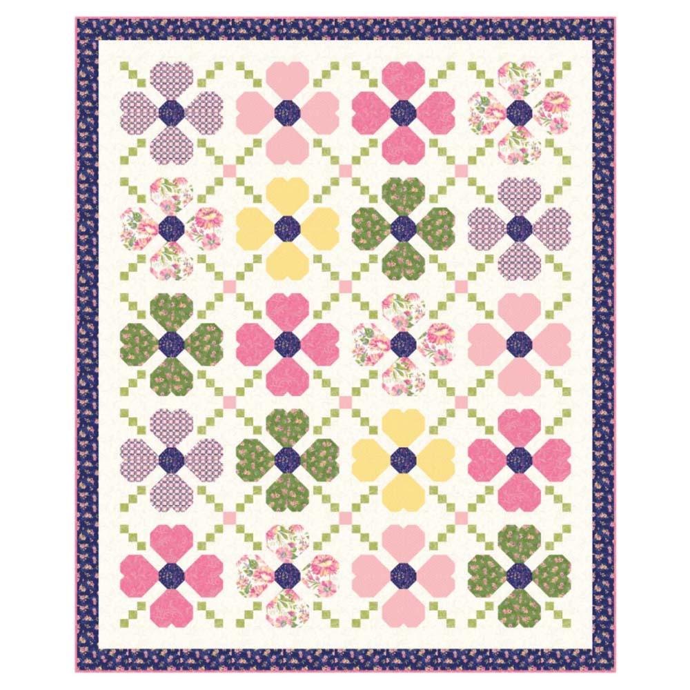 The Rethink Pink pattern is from Marcus Fabrics. This intermediate design features flowers with heart-like petals.
