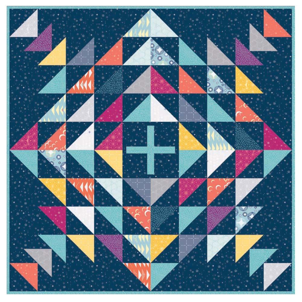 The Splashdown Pattern has a modern look and features diagonal geese blocks.