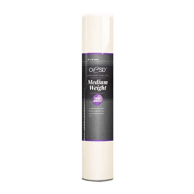 Medium Weight TearAway 15" x 10yds for medium to high stitch count. Removes cleanly and easily.