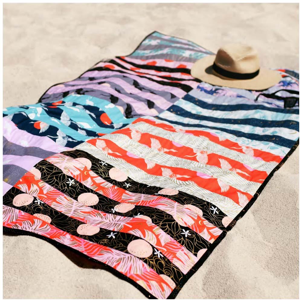 Here's a new use for a quilt - a beach towel! And not just a beach blanket - you can skip the batting and use terrycloth for the backing to make a soft and absorbent wrap for post-swim lounging. This is a great chance to upcycle a towel! All fabrics are from Florida by Sarah Watts for Ruby Star Society. Pattern only.