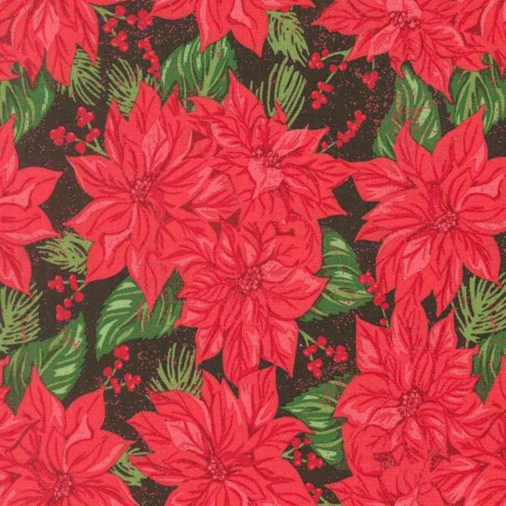 Moda Fabrics - Holiday Cheer by Stacy Iest Hsu - Vintage Poinsettia Florals - Black - Yardage