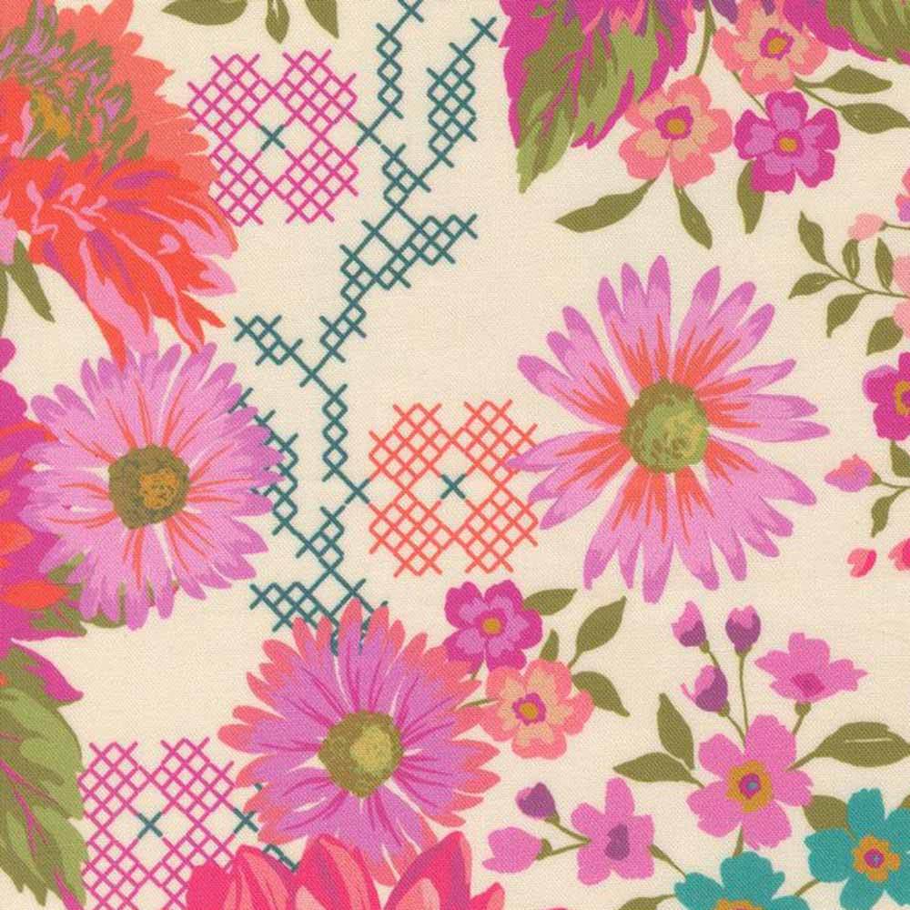 Inspired by cozy gatherings and heirloom charm, Parlor brings joyful energy and handmade warmth. The Happy Blooms Florals in Cream print is by Crystal Manning for Moda.