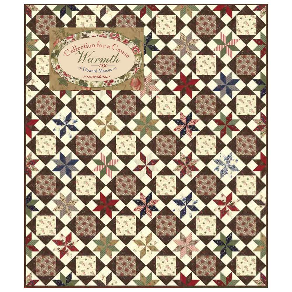 The Warmth Quilt pattern is by Moda Fabrics and features a star design. Paper template included.
