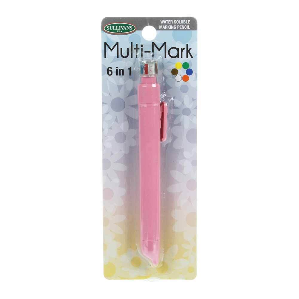 This mechanical-style pencil has 6 colors in 1, perfect for all shades of fabric. Mark your darks, light, and prints - all with one pencil. Water soluble marking pencil writes in white, yellow, red, green, blue, and brown. This handy 6 in 1 tool is a must-have for marking all of your sewing and crafting projects. Easy to use! Simply rotate the color dial and drag the slider down to use the selected color. Lead can be sharpened with a nail file. You can easily remove the markings from fabric with water, a damp cloth, or a sponge before pressing.
