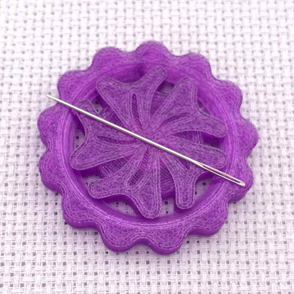 The Needle Minder helps you safely store your needle with your work. Our Needle Minder is different from others because both the top and bottom are large enough that they will not be easily lost. Each Needle Minder half has a strong magnet to keep your Needle Minder in place even when it's stored in a project bag. The Needle Minders are strong enough to use with EPP, and their thickness makes them comfortable to hold in your hand. For best results, slide the Needle Minders apart (rather than pulling them apart). Each Needle Minder is also a fidget spinner--just for fun!