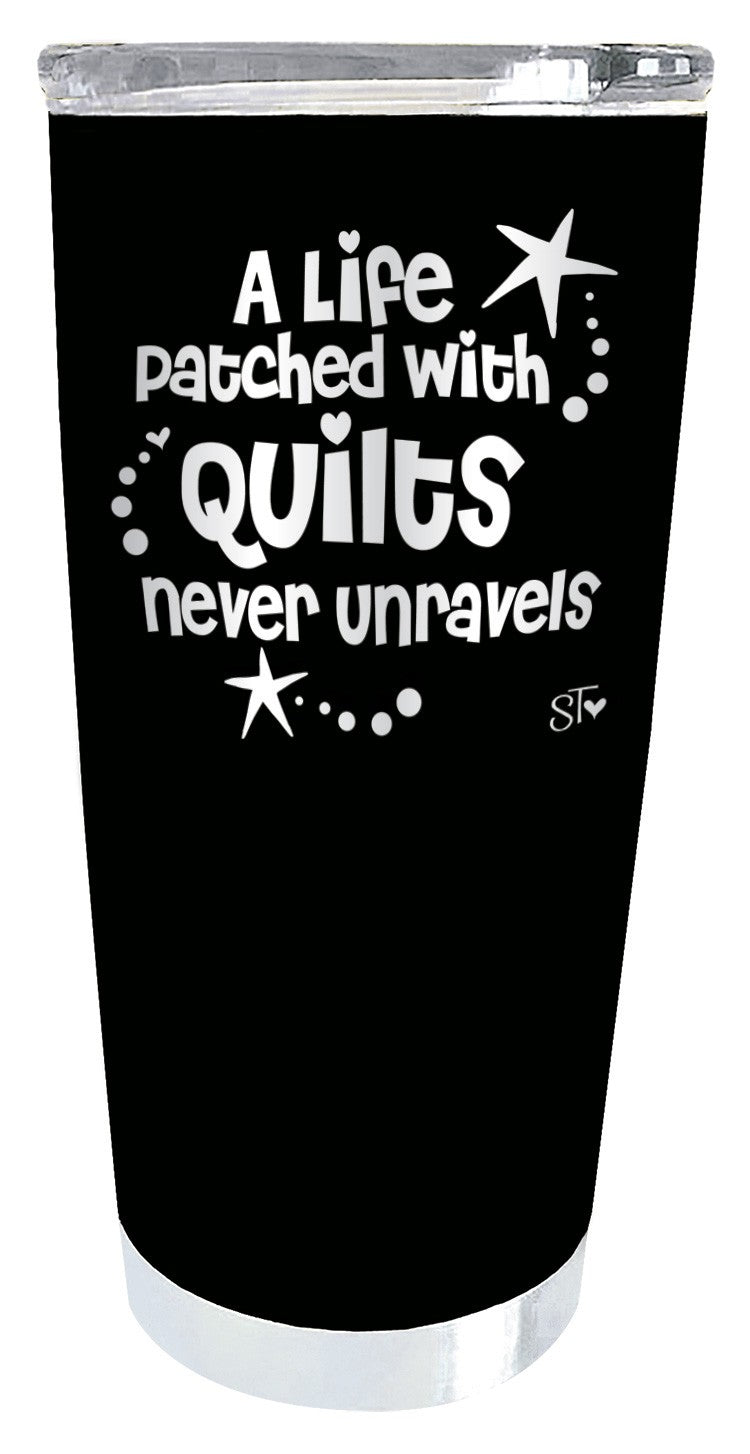 Bring your favorite beverage along when you head out with this insulated tumbler showing off your quilt-loving personality. Includes the tumbler and lid. Holds 20oz and is BPA-free. Top rack dishwasher safe, hand was recommended for optimal care. Do not use in microwave.