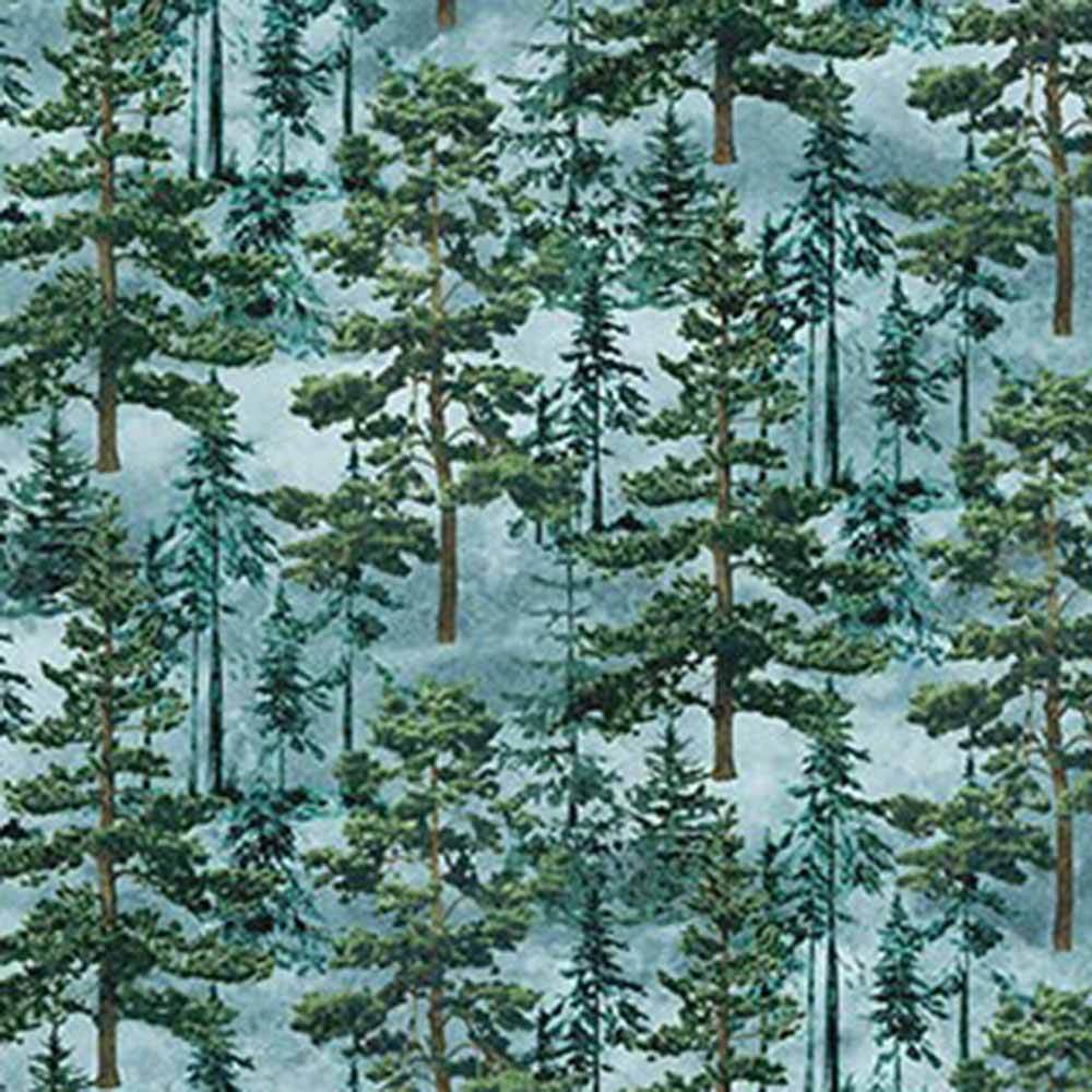 Northcott Fabrics - Eagle Pass By Linda Ludovico - Packed Trees - Blue - Yardage