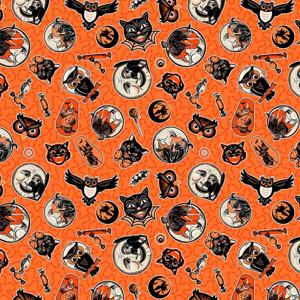 Northcott Fabrics - Haunted Hollow by Patrick Lose - Halloween Spooky Toss - Orange - Yardage
