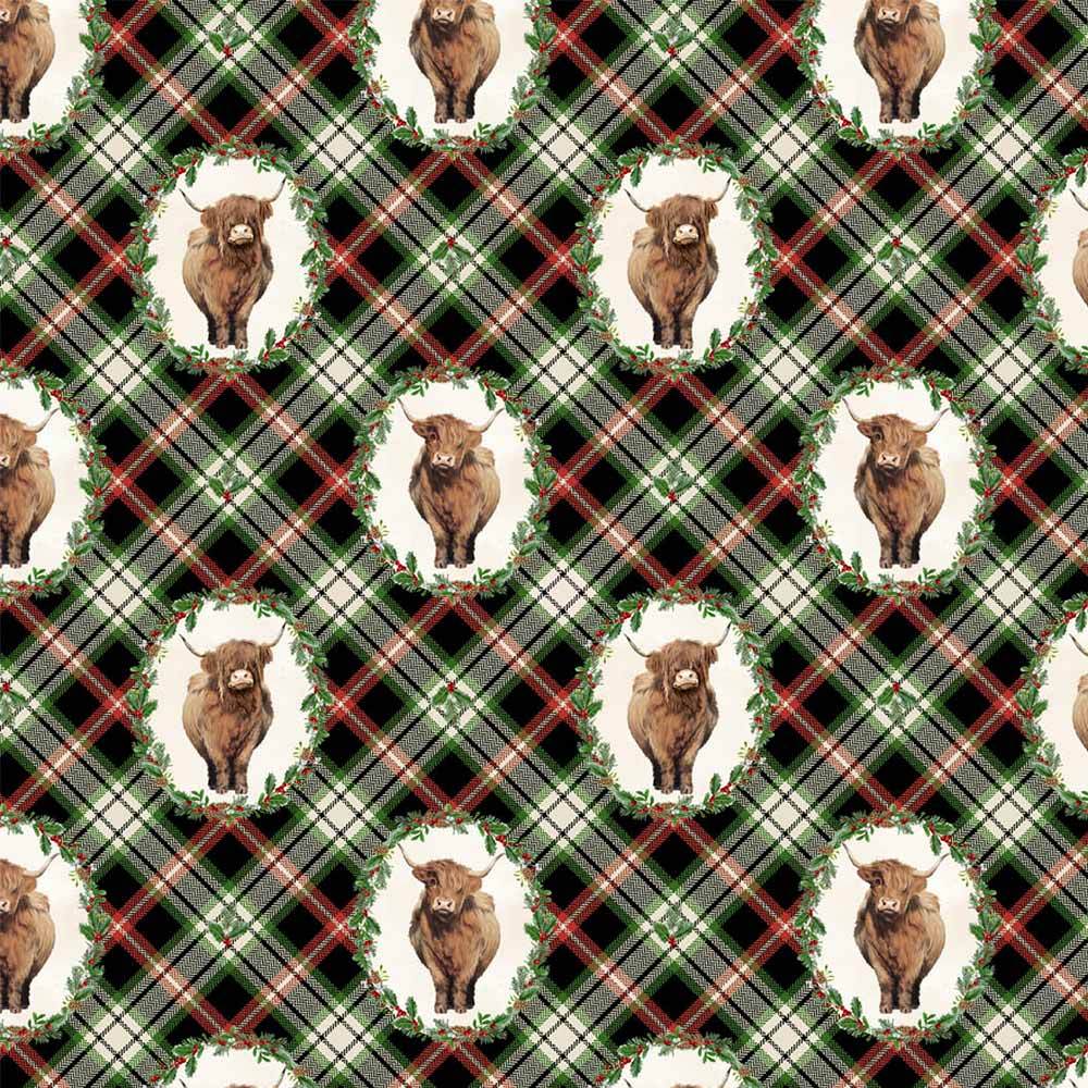 Northcott Fabrics - Highland Heart by Jason Kirk - Cow Wreaths - Multi - A Digital Print - Yardage