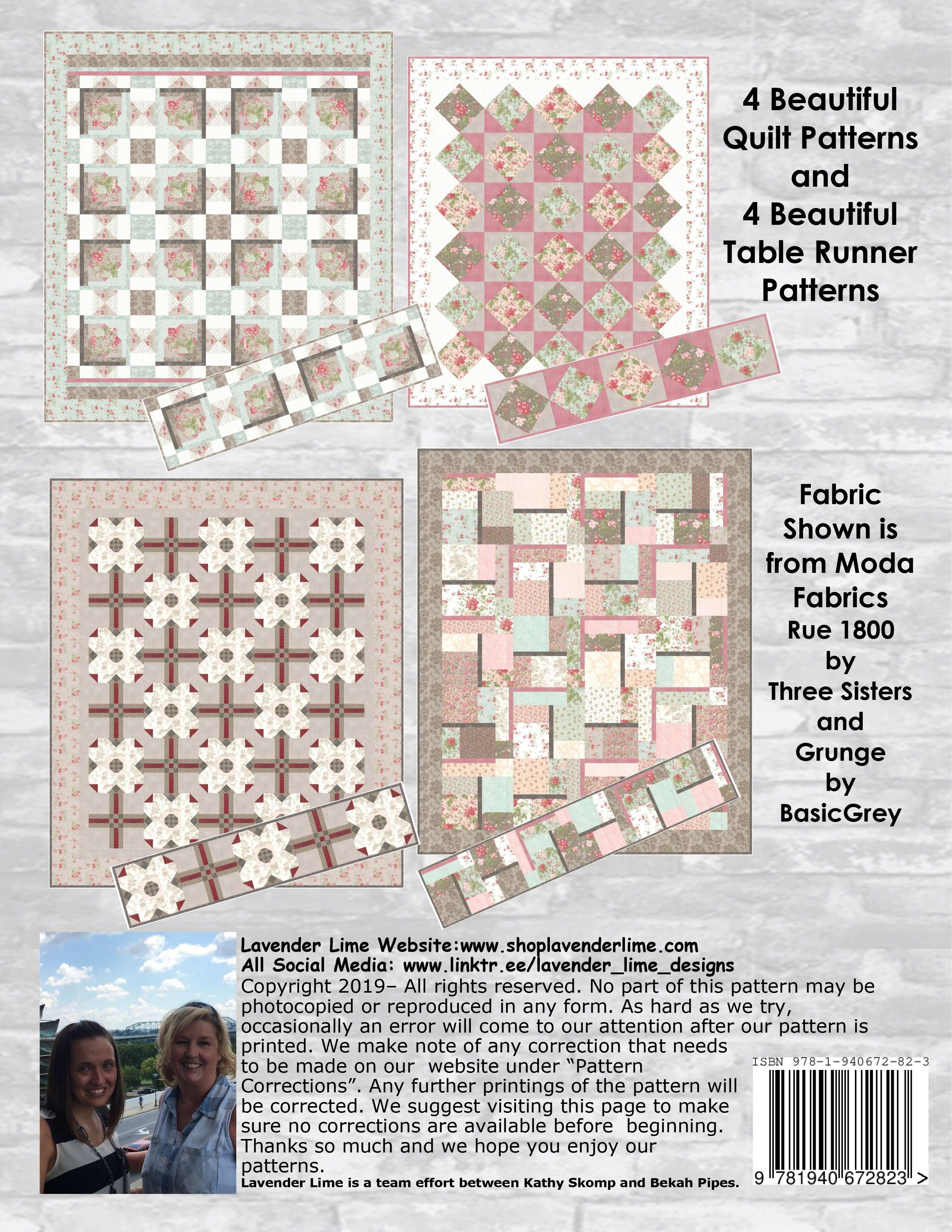 4 Beautiful Quilt Patterns with Matching Tablerunner patterns. Quick and easy.
