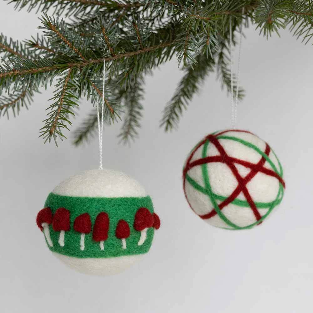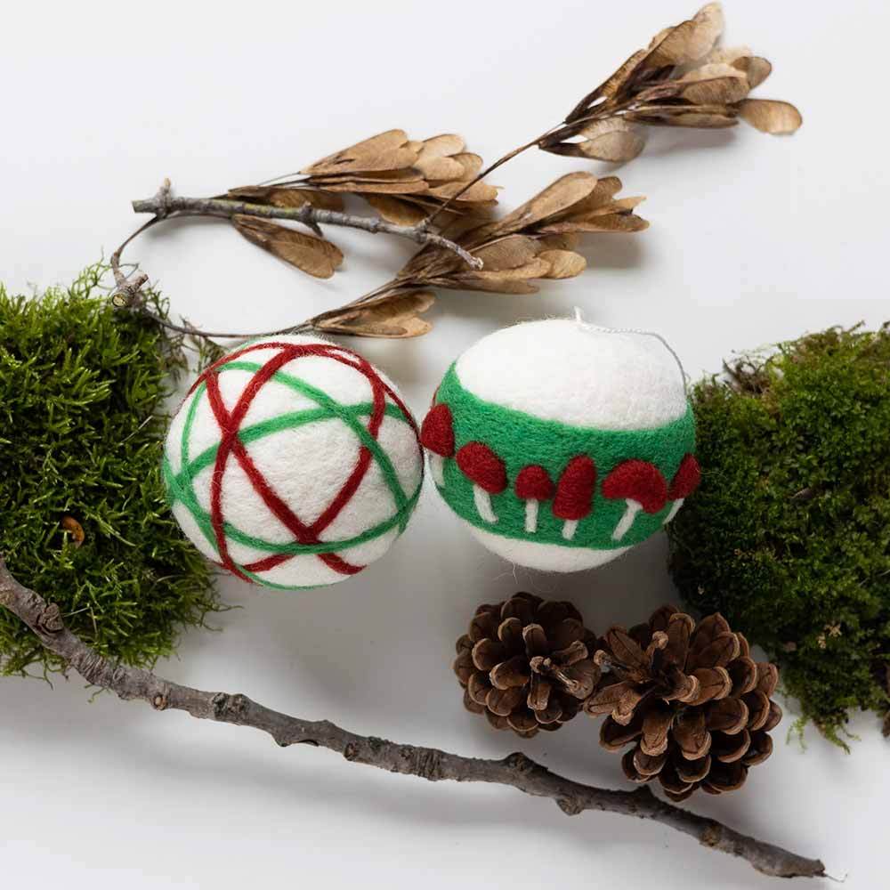 This needle felting kit includes everything needed to make two cute coordinating ornaments. Stick to the patterns shown or create your own. This is an easy way to venture into needle felting since the balls are already formed and ready to decorate after some firming up.