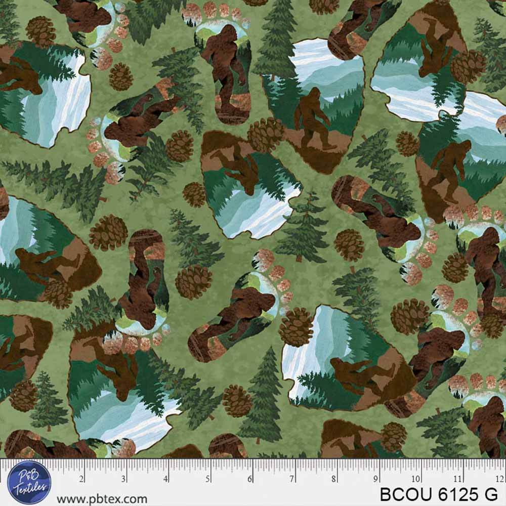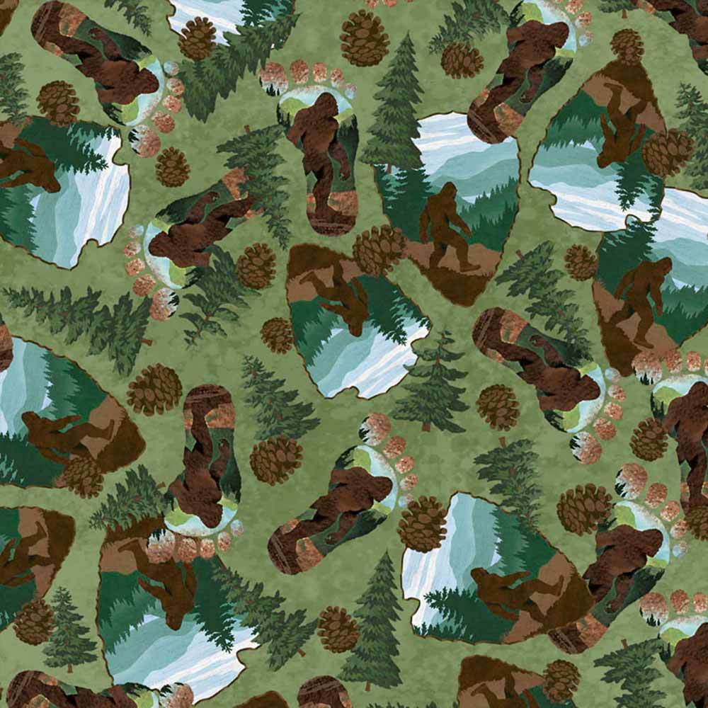 P&B Textiles - Bigfoot Country by Lauren Rader - Bigfoot & Arrowheads - Green - Yardage