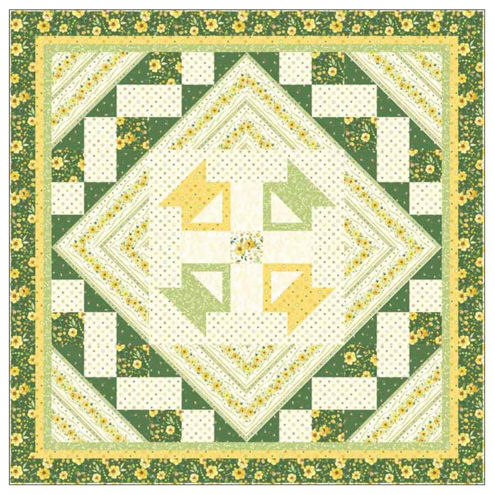 Fresh green and yellow fabrics really make this table topper shine. Botanical Nectar Table Topper pattern is by Cyndi Hershey. Pattern only.