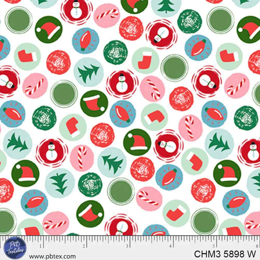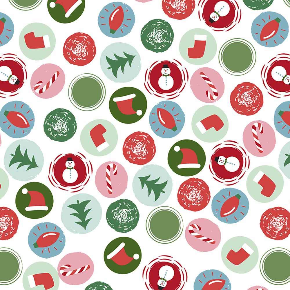 P&B Textiles - Christmas Miniatures III - Pink Light Studio - Holiday Icon Toss - White - Yardage