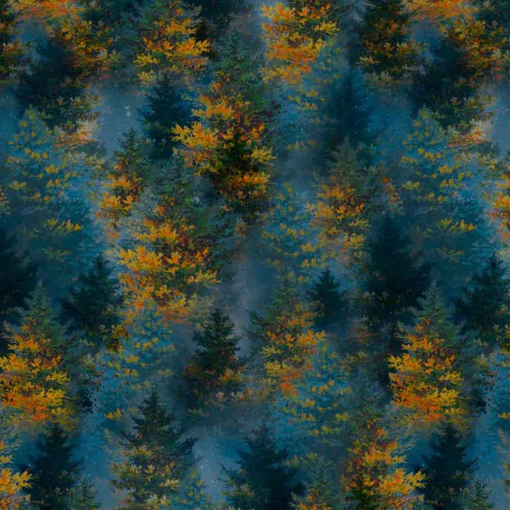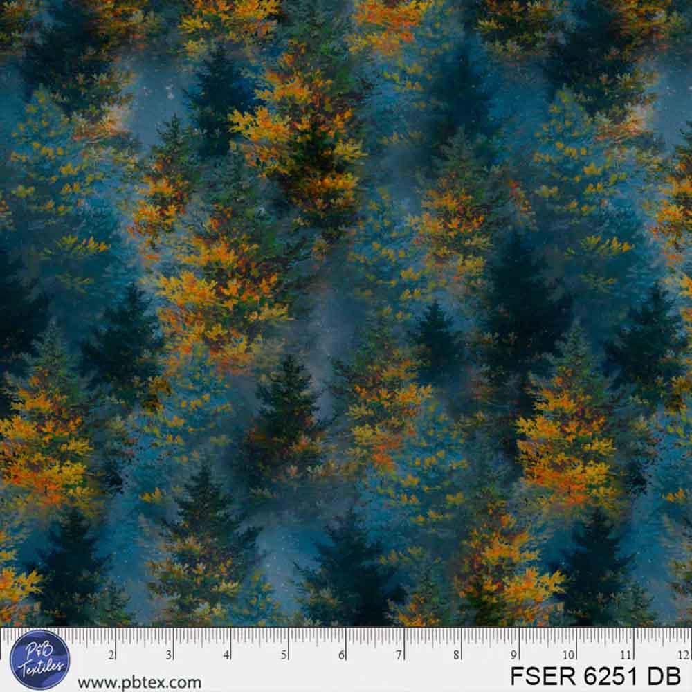 P&B Textiles - Fireside Serenity by Abraham Hunter - Packed Trees In Mist - Blue - Yardage