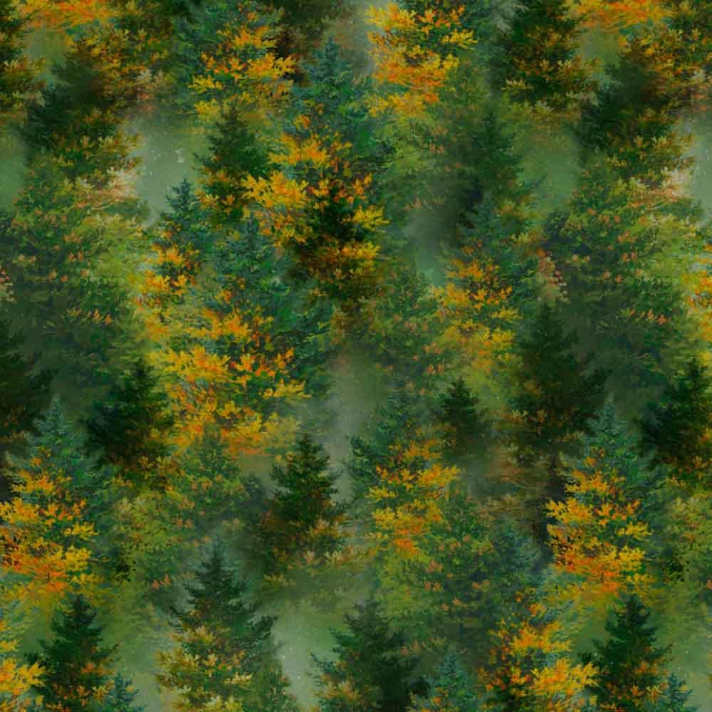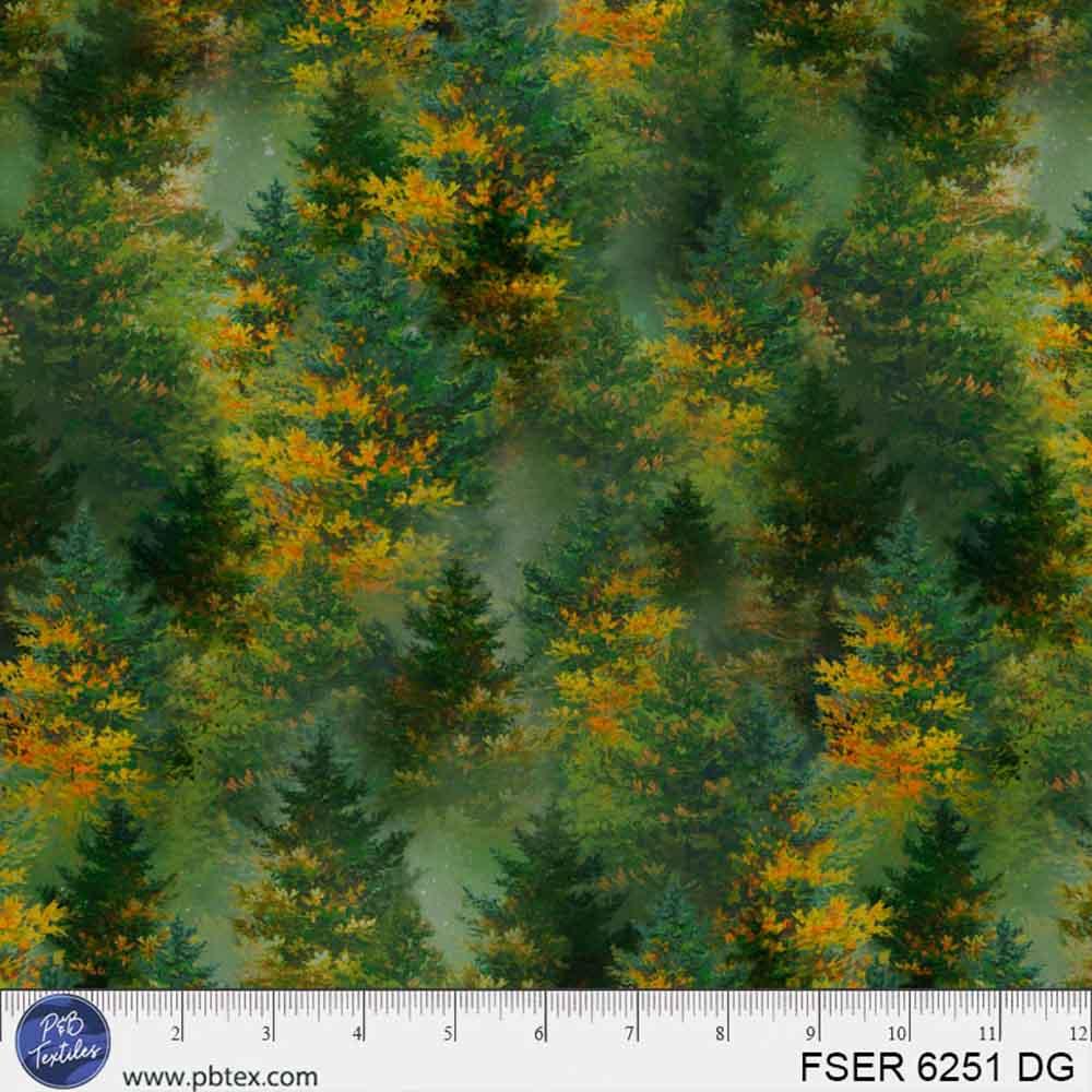 P&B Textiles - Fireside Serenity by Abraham Hunter - Packed Trees In Mist - Green - Yardage