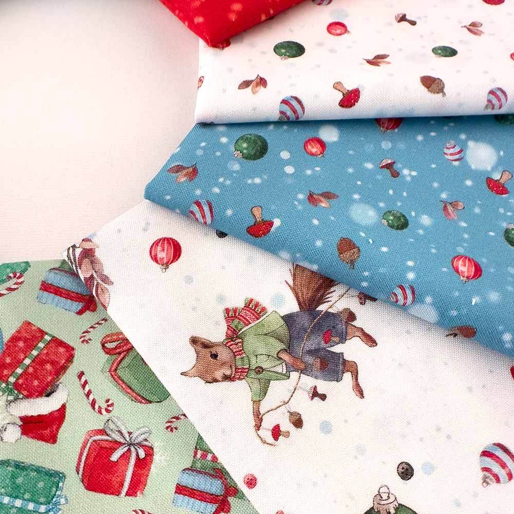 Launch into a merry, storybook holiday season with this enchanting winter fabric collection. Frost & Fable, designed by Leslie Trimbach for P&B Textiles blends charming motifs—playful deer, snowmen, gifts, and ornaments—with cheerful reds, greens, blues, and whites in stripes, checks, and geo prints. This 10" x 10" collection includes 42 pieces.