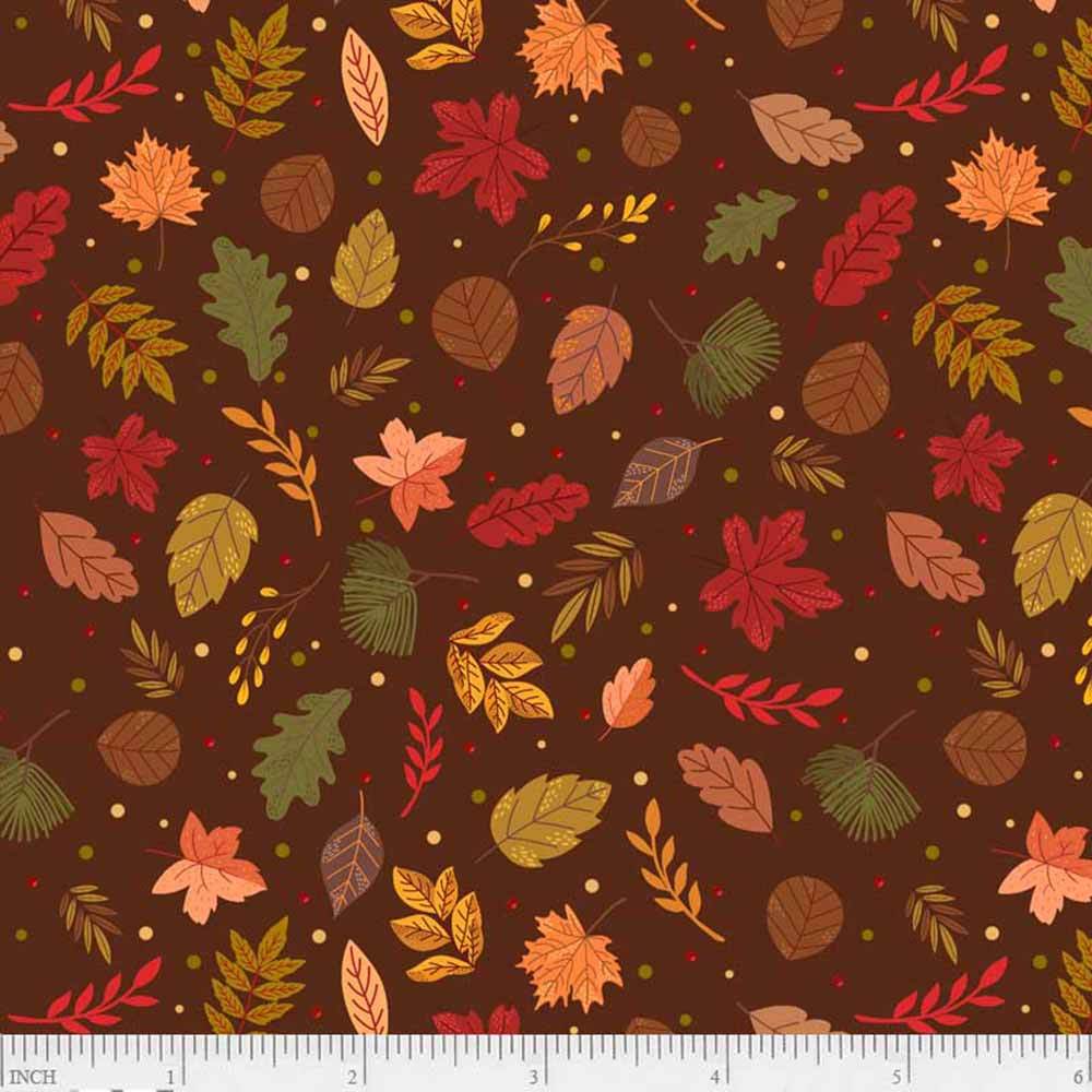 P&B Textiles - Harvest Mini's By Pink Light Studio - Mini Leaves - Brown - Yardage