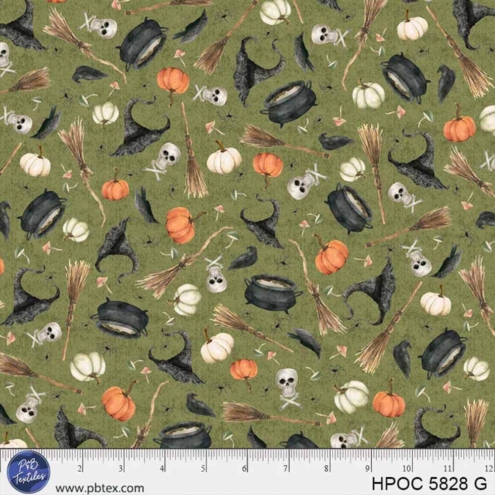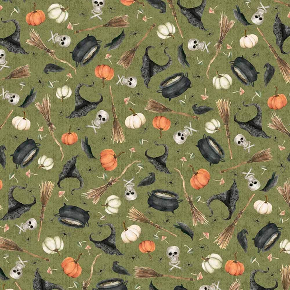 P&B Textiles - Hocus Pocus By Stacy Day - Small Halloween Toss - Green - Yardage