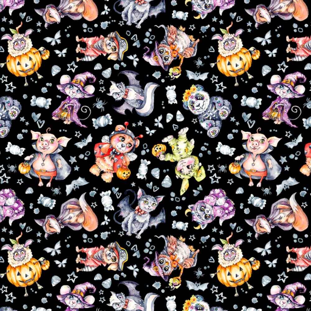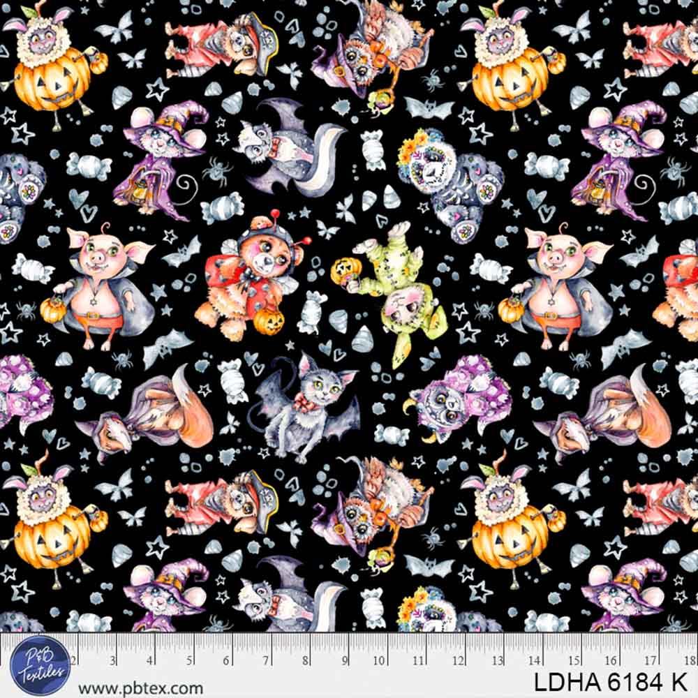 P&B Textiles - Little Darling Halloween by Sally Walsh of Sillier Than Sally Designs - Animal Toss Costumes - Black - Yardage