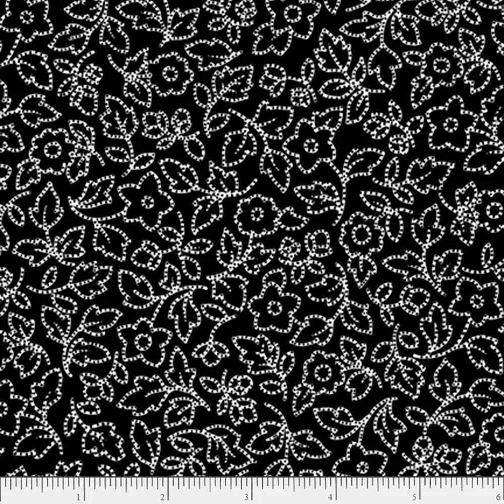 P&B Textiles - Salt & Pepper II - Floral Stitch - Black - Yardage