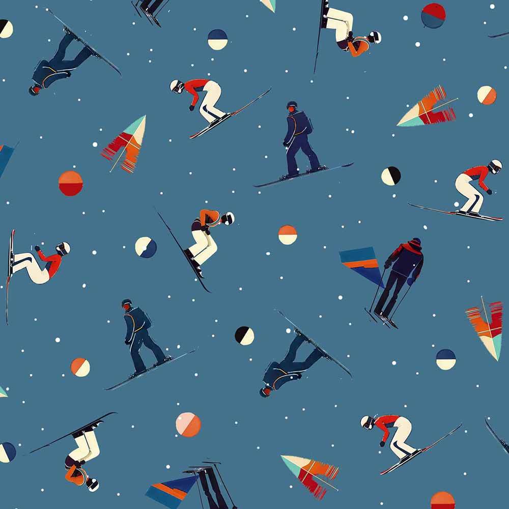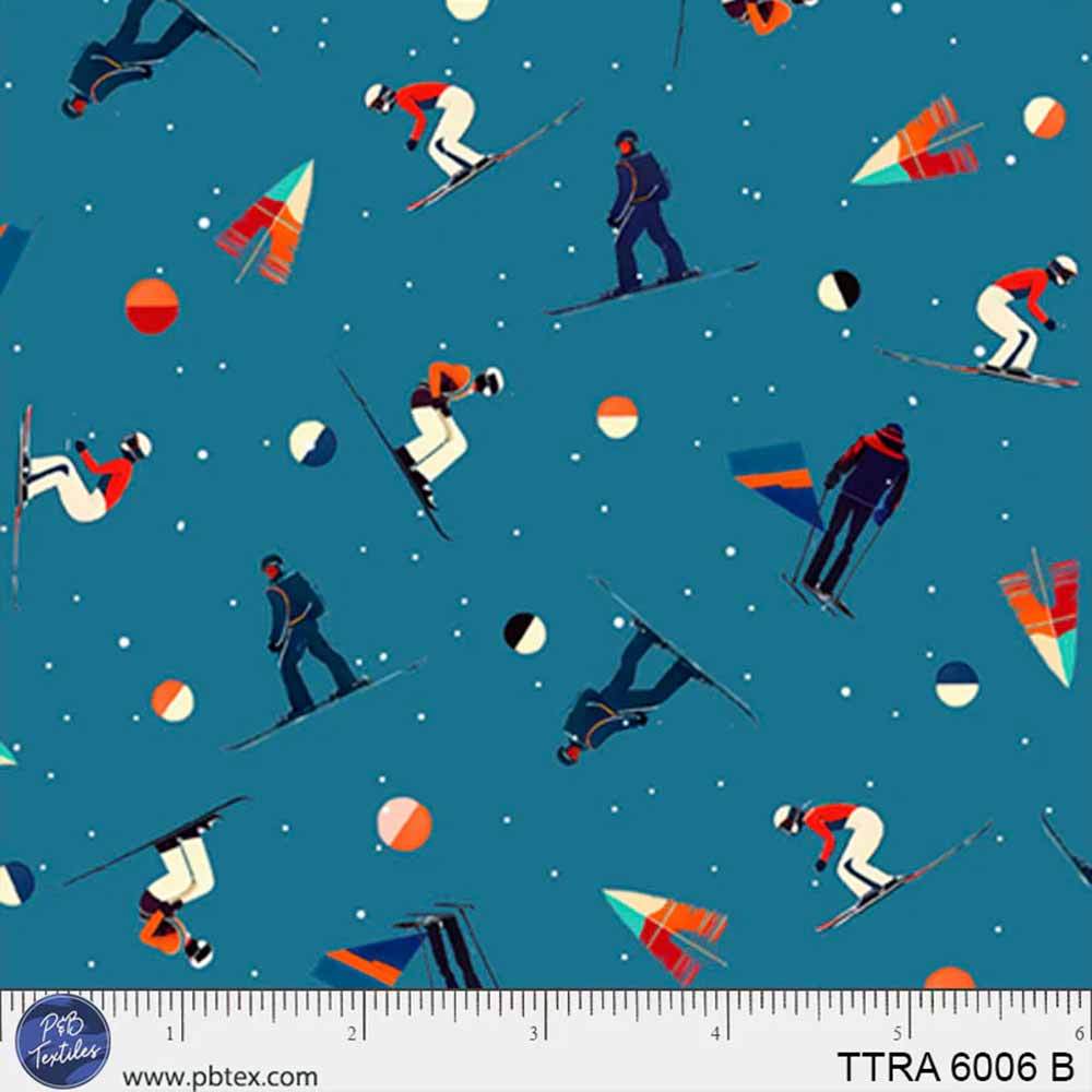 P&B Textiles - Timeless Trails by FootePrint Art - Skiers Allover - Blue - Yardage