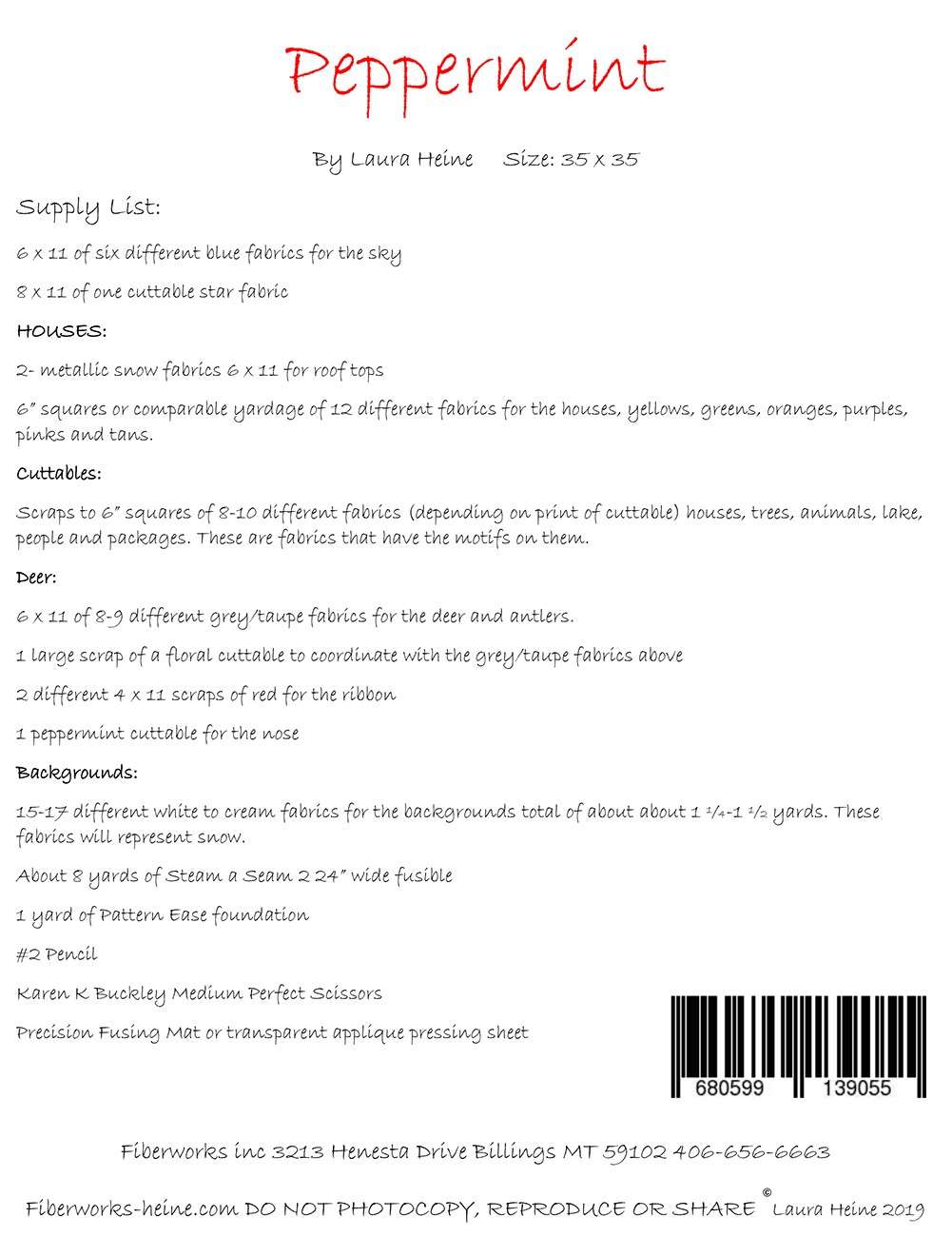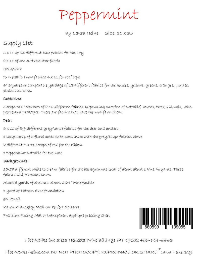 Peppermint Collage Pattern features complete step by step color instructions and full size pattern. Finished Size: 35 inches x 35 inches. Fabric not included.