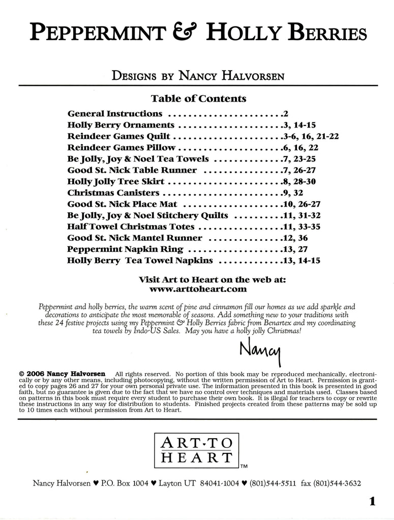 Peppermint and holly berries, the warm scent of pine and cinnamon fill our homes as we add sparkle and decorations to anticipate the most memorable of seasons. Add something new to your traditions with these 24 festive projects using my Peppermint & Holy Berries fabric from Benartex and my coordinating tea towels by Indo-US Sales. May you have a holly jolly Christmas!