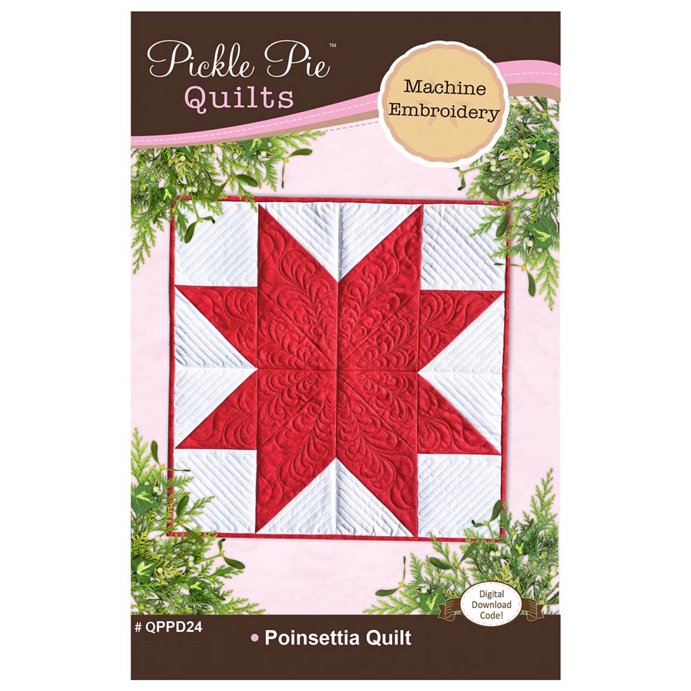 Stitch a gorgeous Poinsettia Quilt with quick and easy quilt blocks, made right in-the-hoop of your embroidery machine! Each block is pieced and magically quilted on your embroidery machine, then assembled on your sewing machine with an easy stitch-in-the-ditch method. Full illustrated instructions are included. Three hoop sizes are included and you can make multiple units to create a larger quilt project. Each block features beautiful quilting that’s done magically in-the-hoop Assemble the quilt blocks on your sewing machine Amazing step-by-step instructions